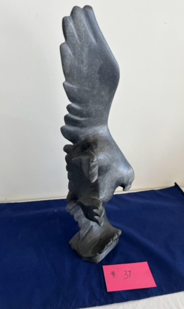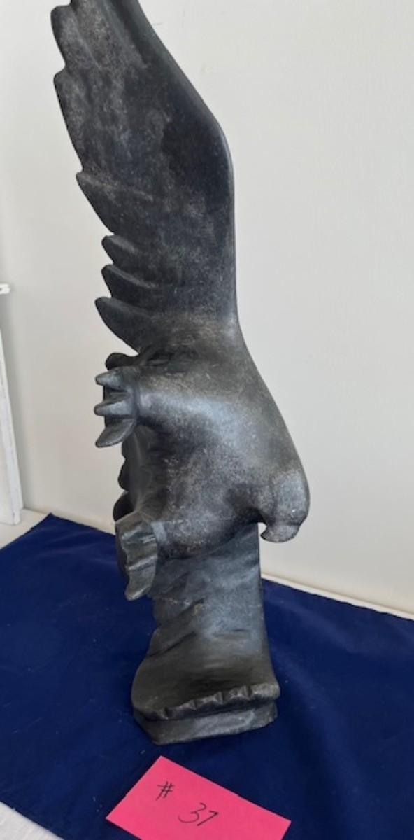 Gyr falcon carved by Ineaq Padley. heavy stone. 25 x 7