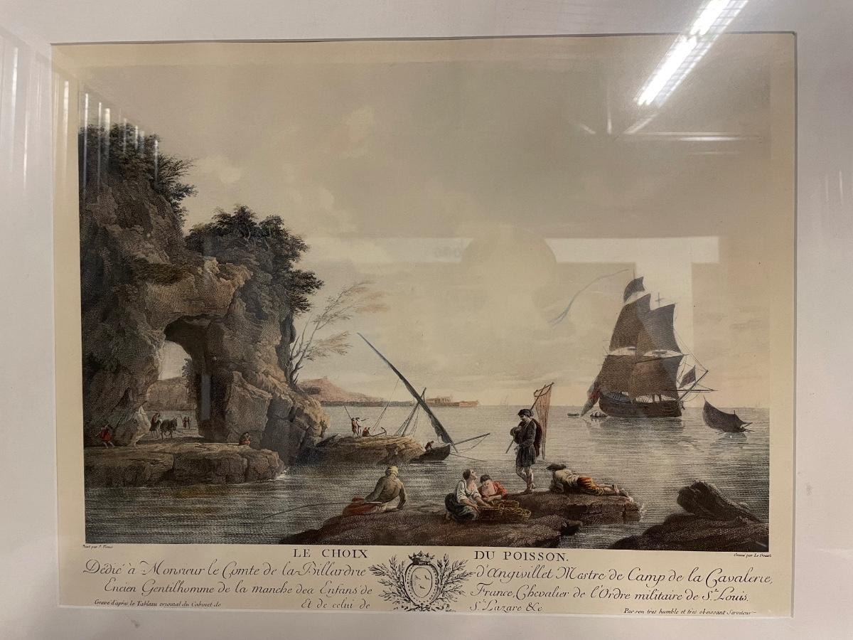 INV #126: French Le Choix du Poisson lithograph, Joseph Vernet H 13.5" x W 17.5"