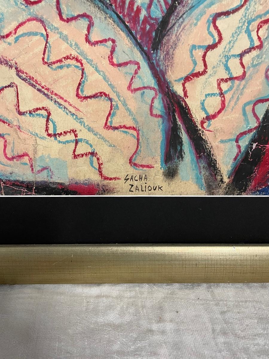 INV #163: Sacha Zaliouk, Surrealist pastel abstract of woman on telephone, H 32.5" x W 22.5"