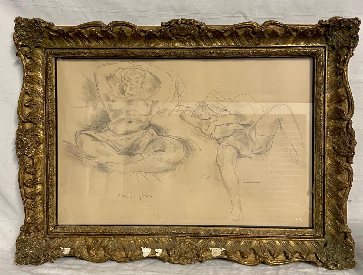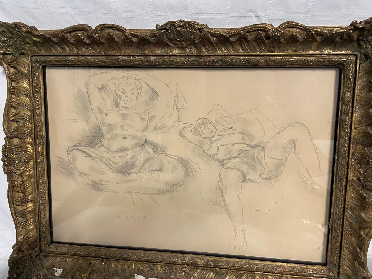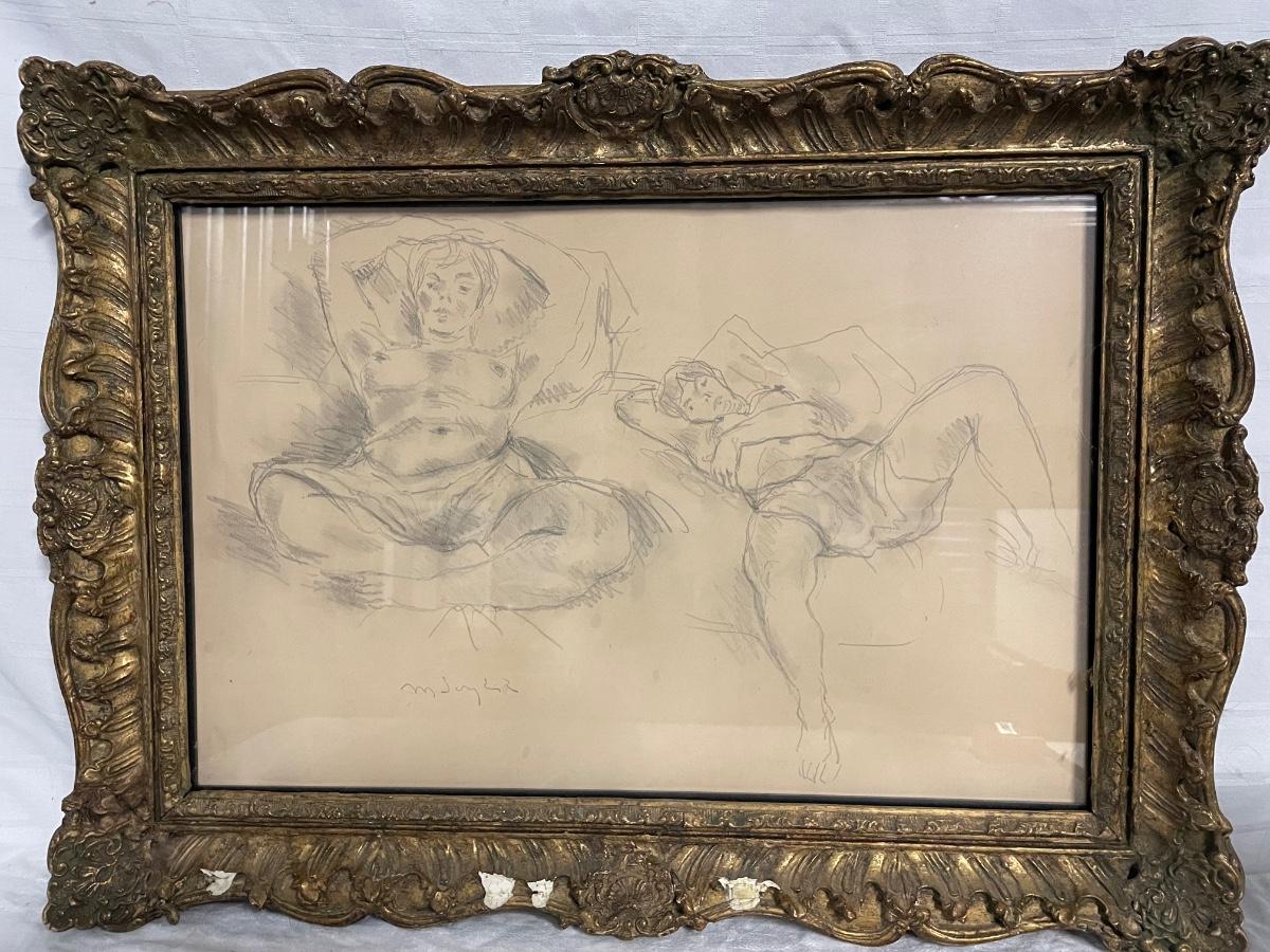 INV 166: Moses Soyer Pencil sketch of two figures lying back in bed, H 15" x W 23"