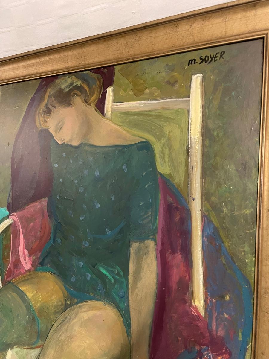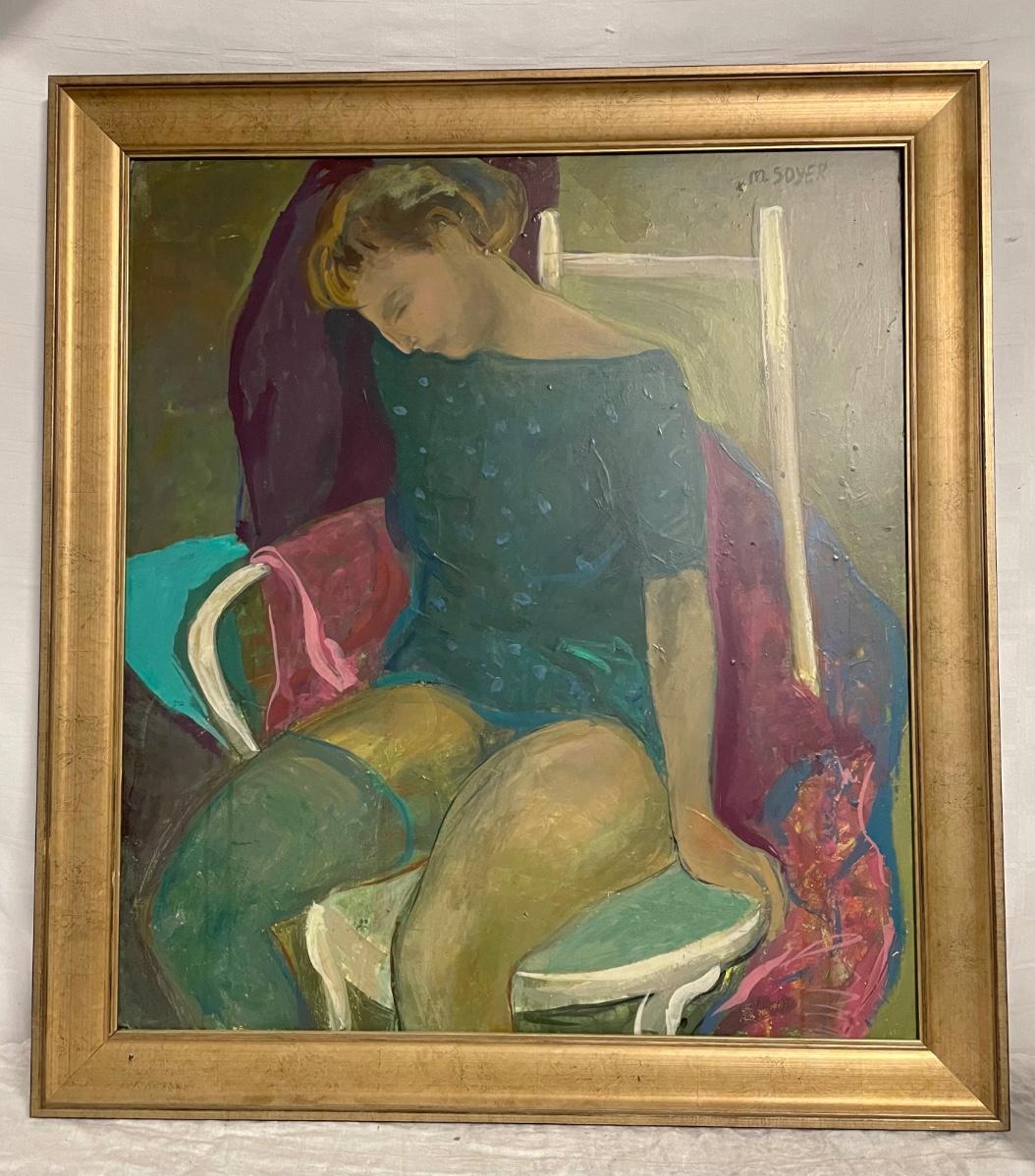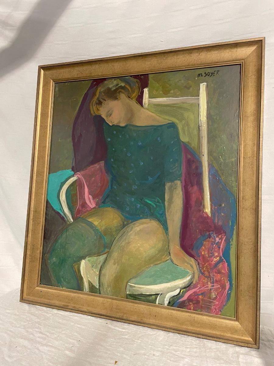 INV #173: M Soyer painting, woman with teal stocking, H 31" x W 27"