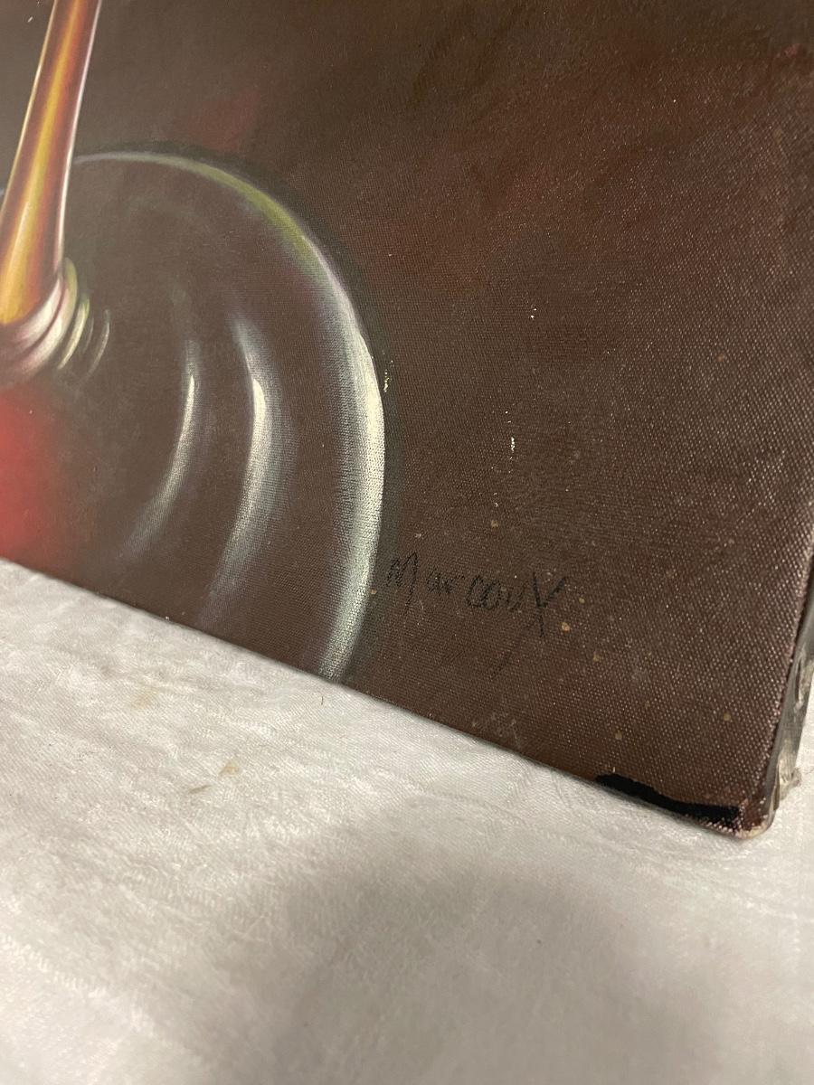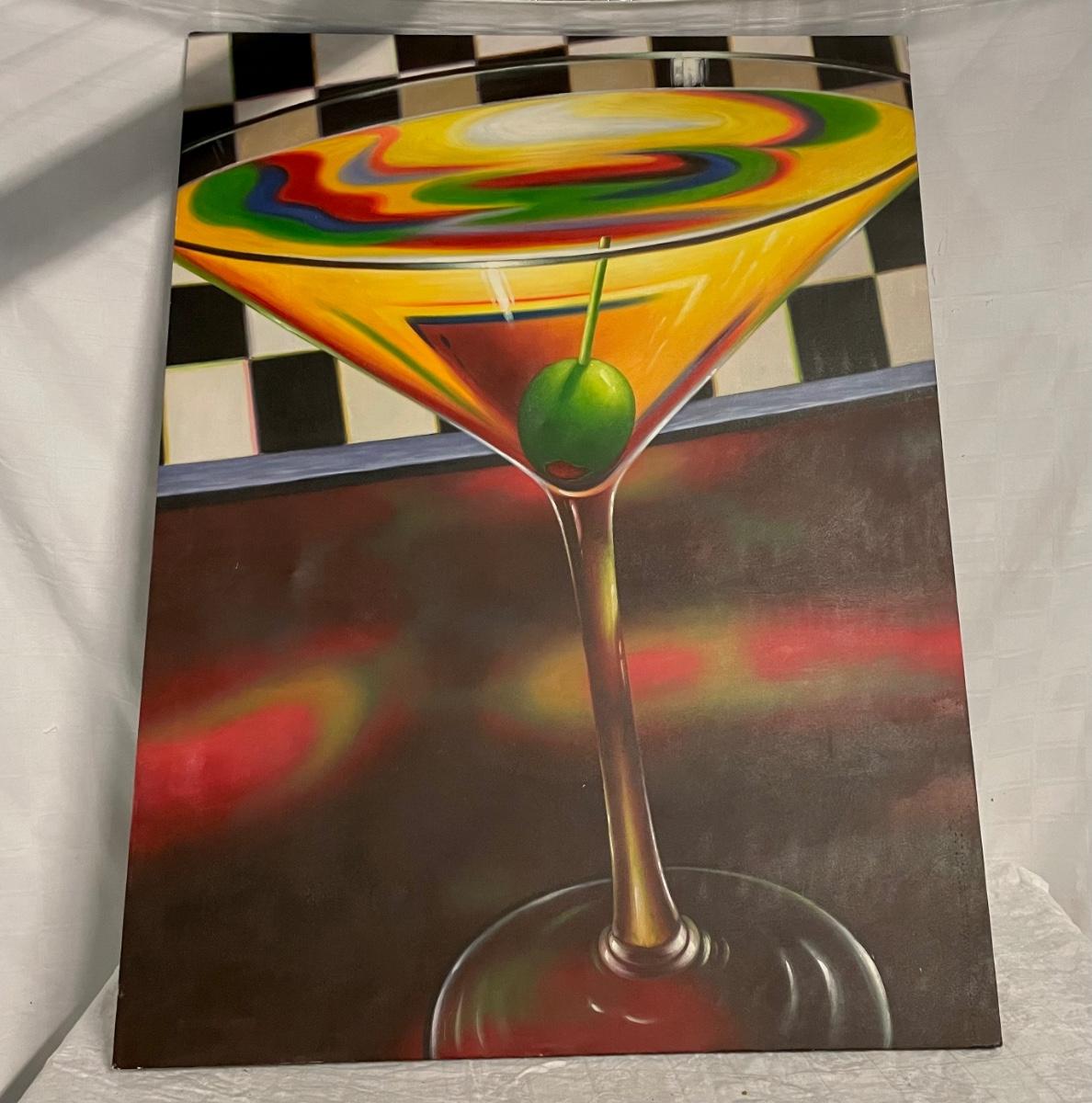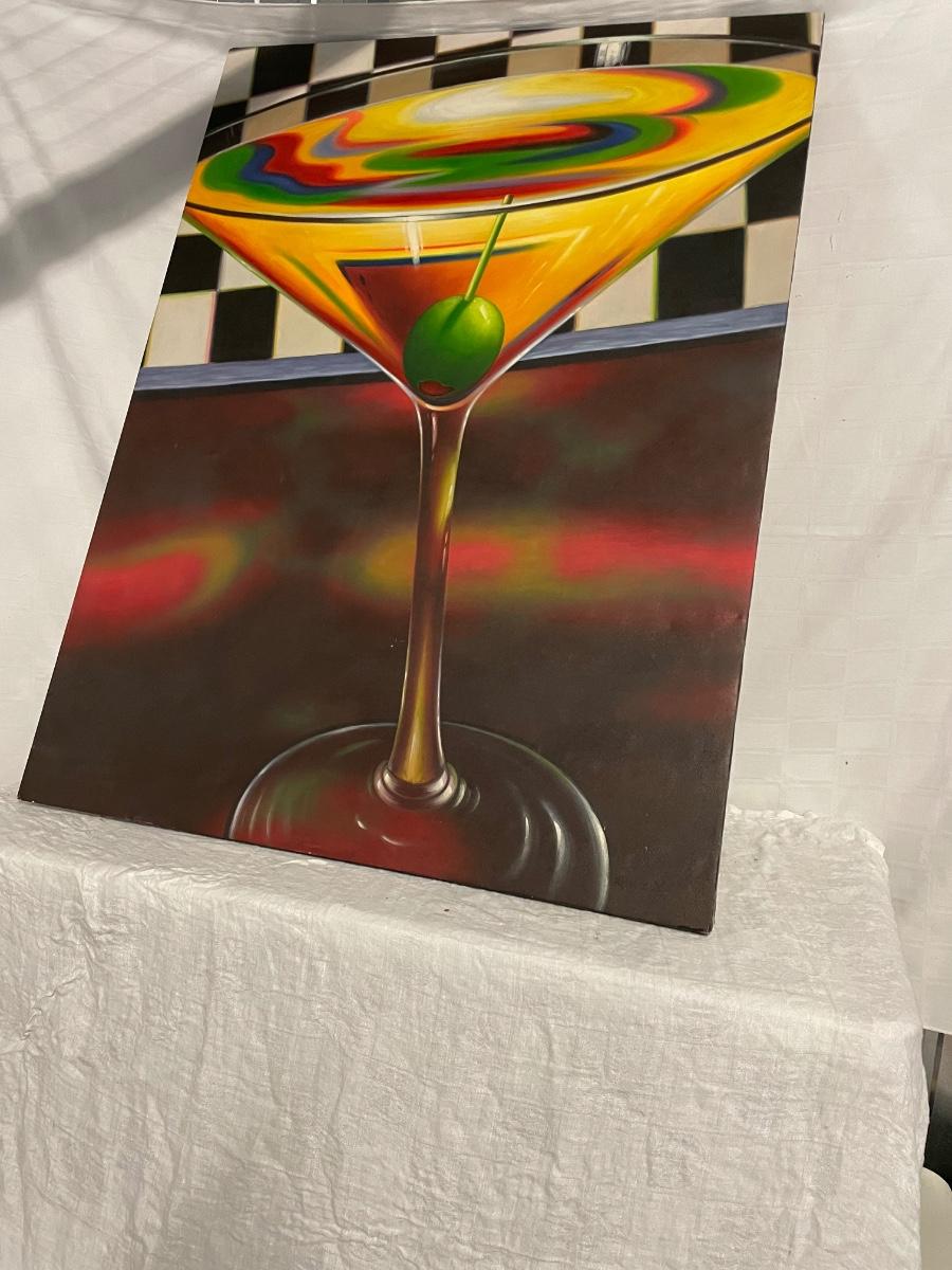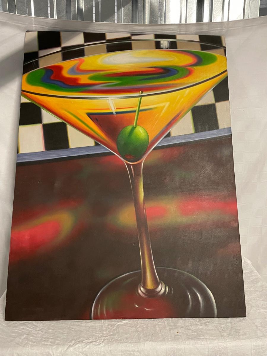 INV #180: Signed Marcoux modern impressionist oil on canvas painting of martini, H 48" x W 36"
