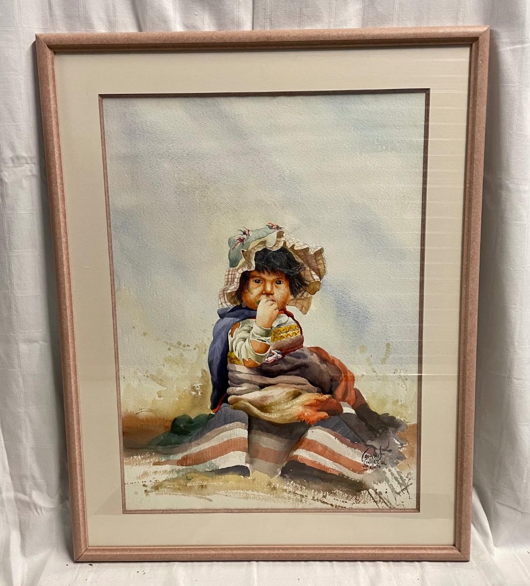 INV #40: Watercolor of Native American Child titled "Belotta", H 29" x W 21"