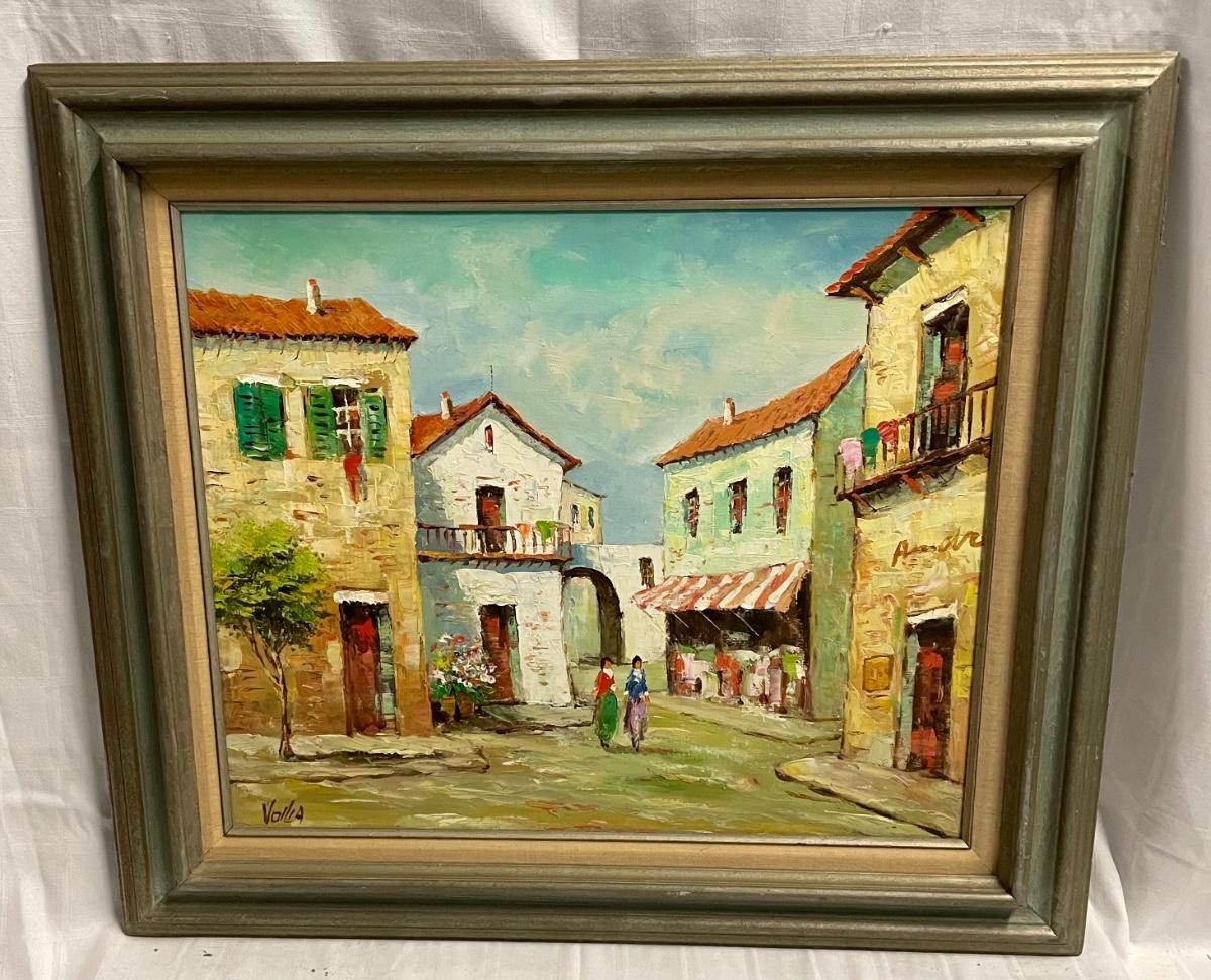 INV #43: Spanish street scene painting signed Voilia, H 19.5" x W 23.5"