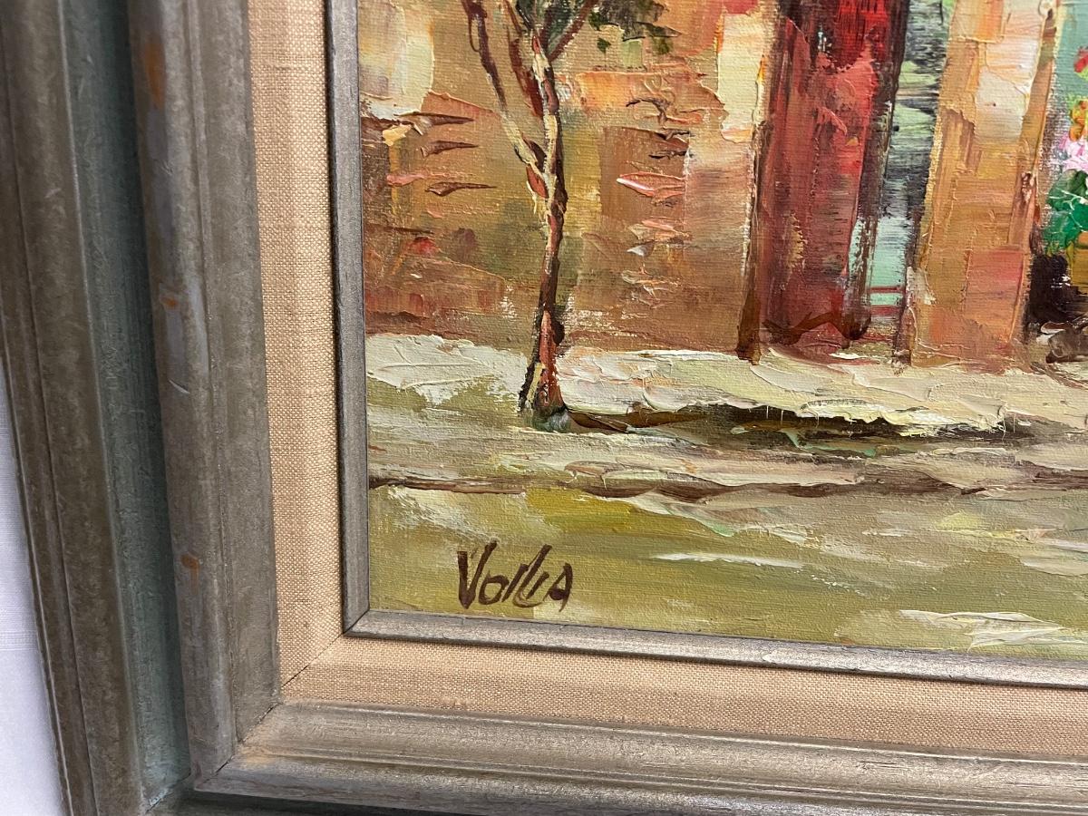 INV #43: Spanish street scene painting signed Voilia, H 19.5" x W 23.5"