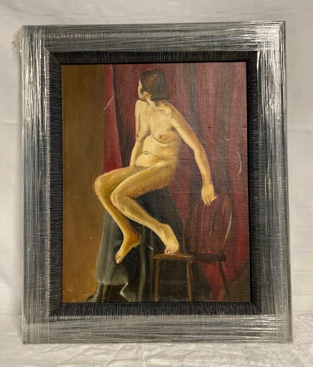 INV #45: Painting, nude woman with chair, artist unknown, H 20" x W 16"