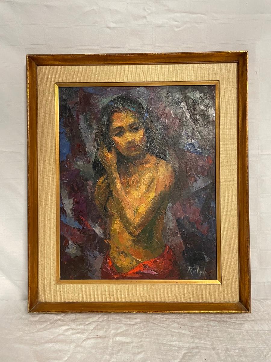 INV #47: Untitled portrait oil painting of woman, signed Ralph H 21" x W 17"