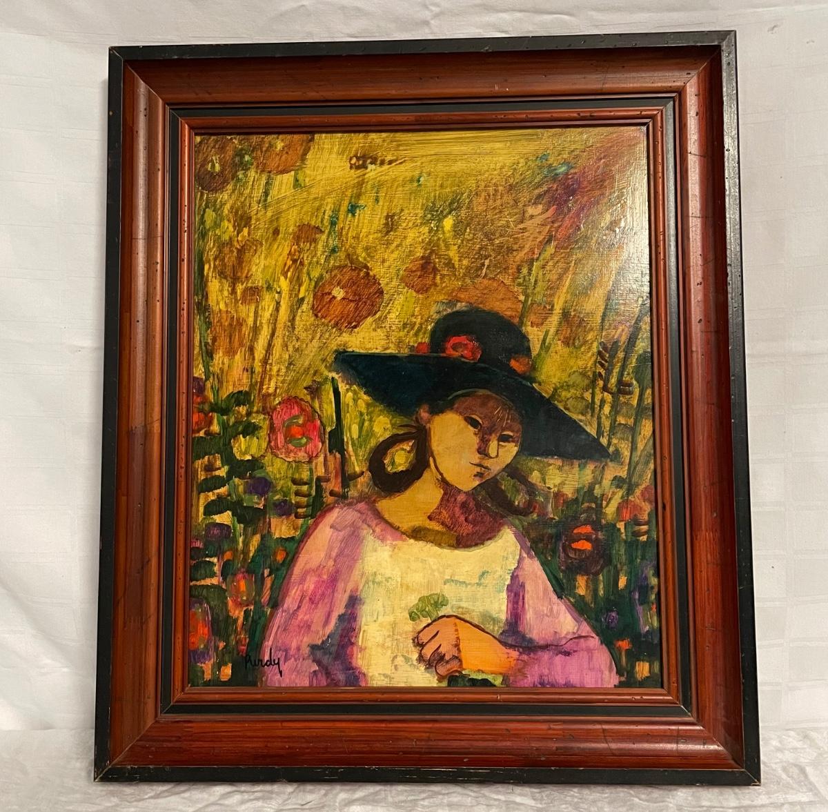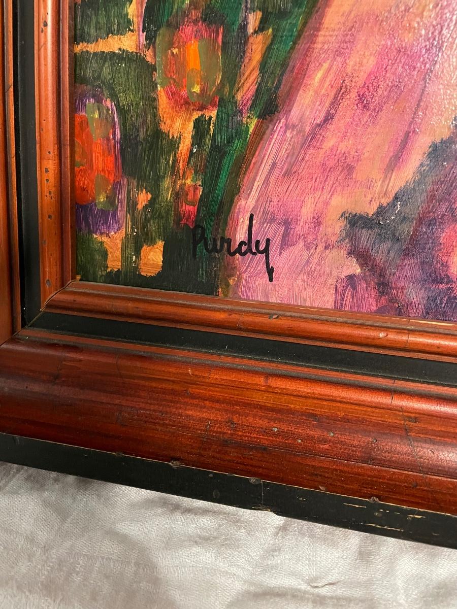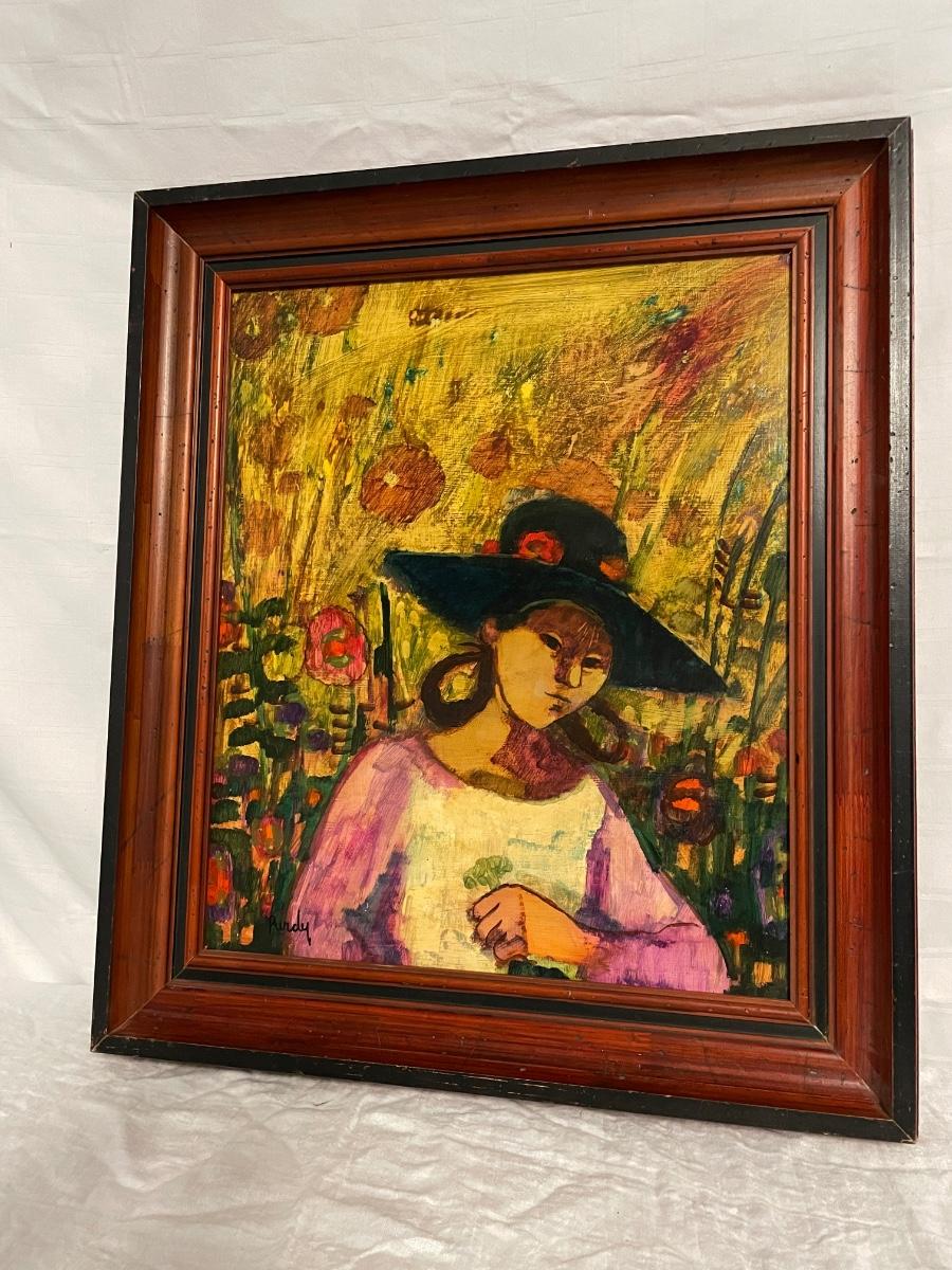 INV #48: Donald Roy Purdy painting, woman in poppy field, H 23.5" x W 19.5" with certificate