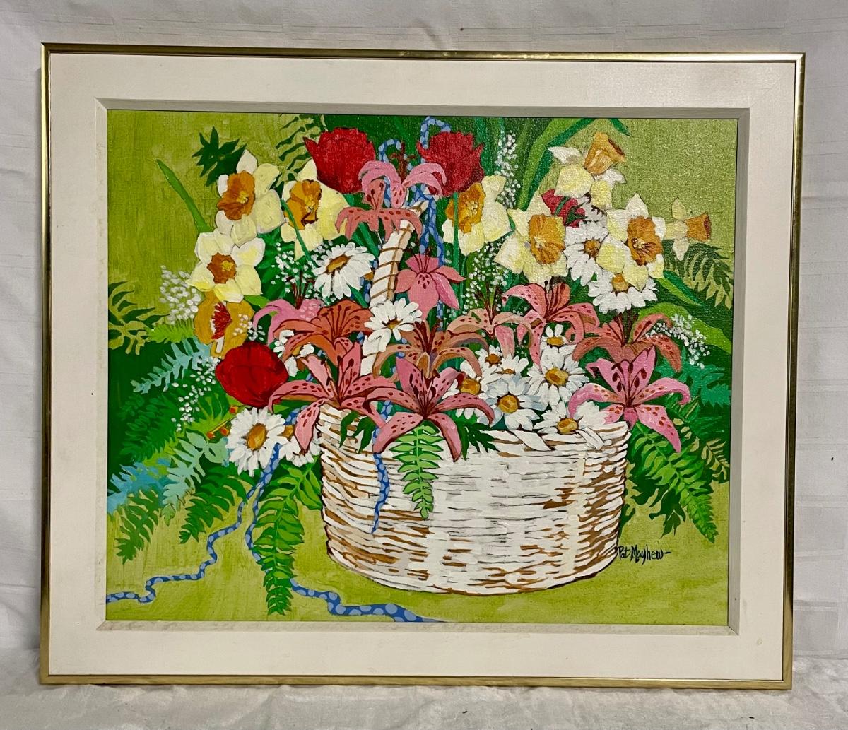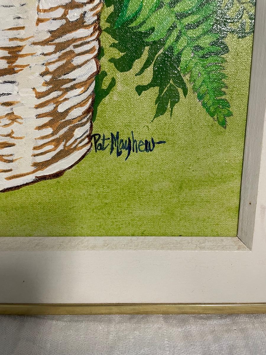 INV #52: Pat Mayhew signed flower basket painting, H 17.5" x W 21.5"