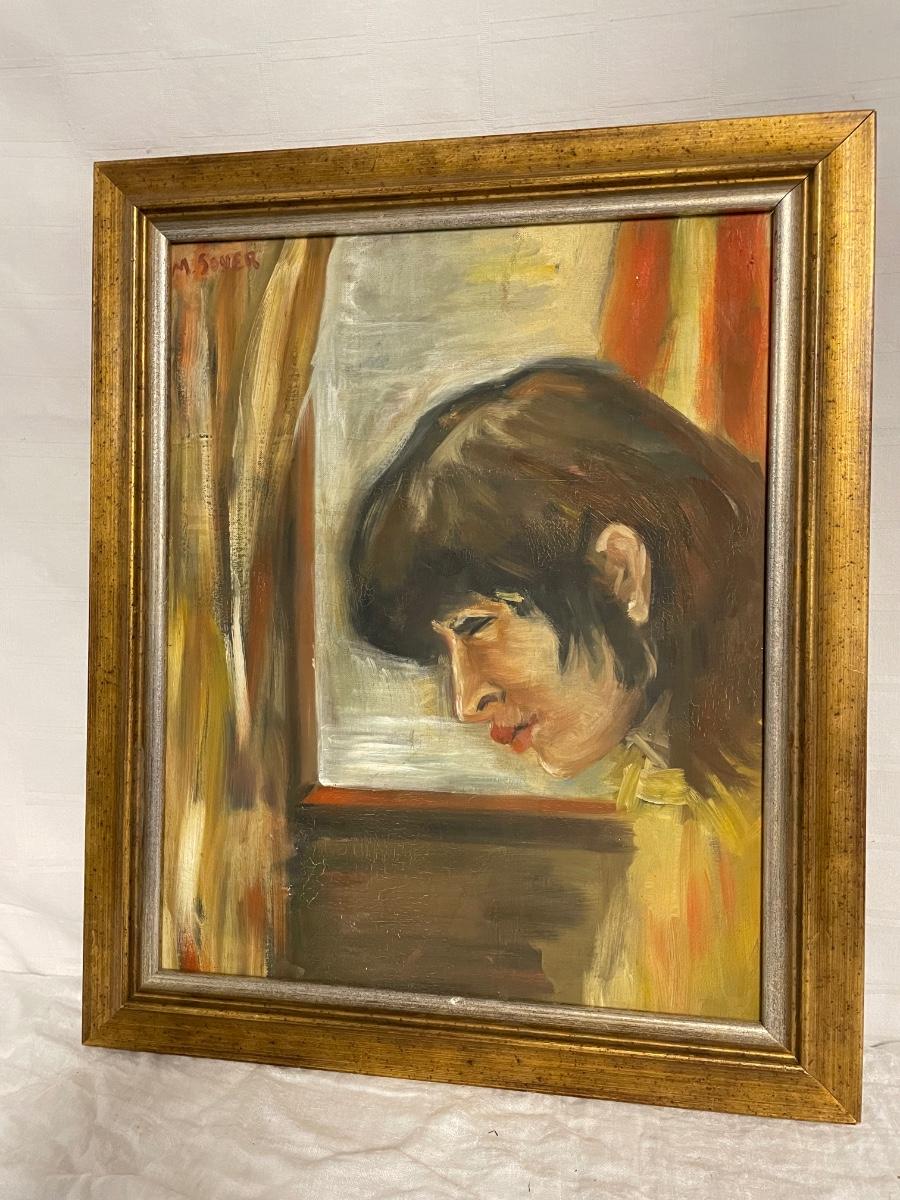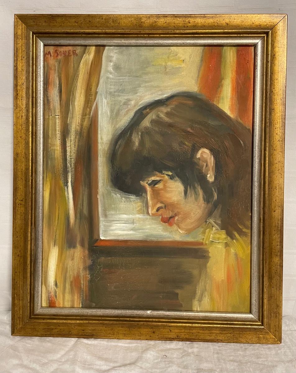 INV #54: Moses Soyer signed portrait of woman looking downward, H 19" x W 16"