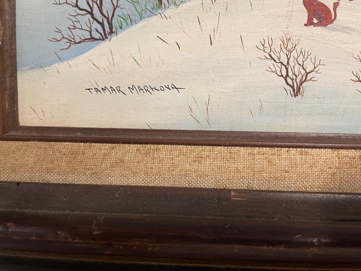 INV #91: Tamar Markova European oil painting, winter village scene, H 19" x W 23"