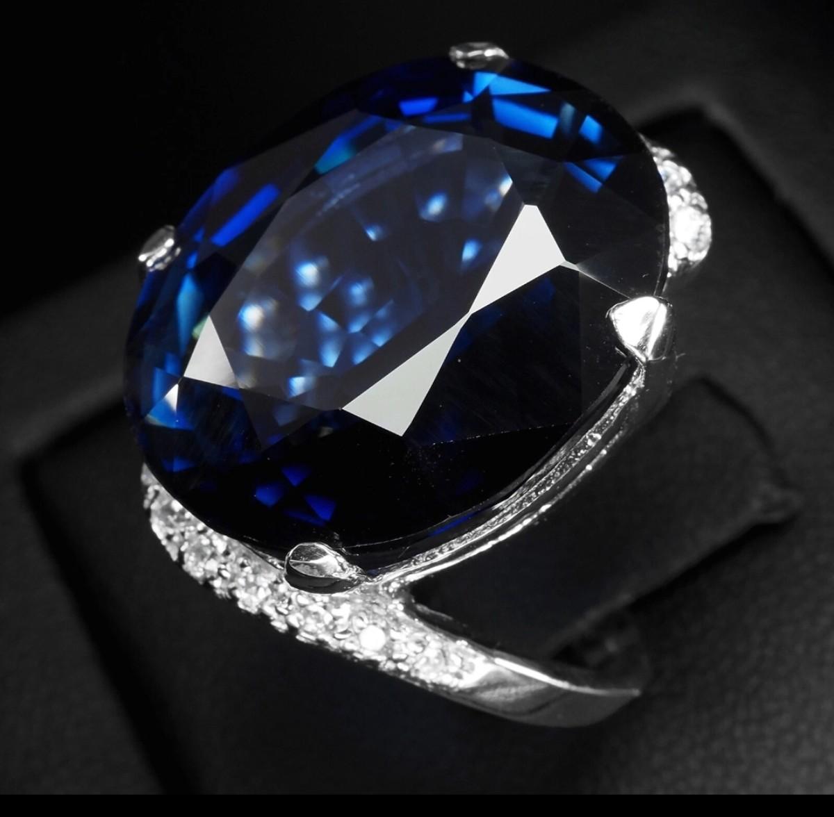 Invaluable Blue Tanzanite Rare 27.85Ct 925 Sterling Silver Ring Size 6