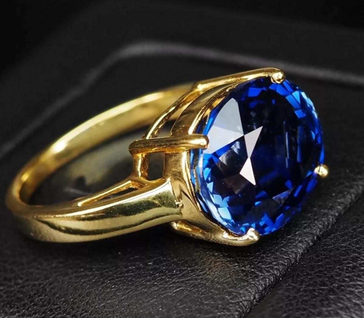 Invaluable Navy Blue Sapphire 10.70Ct 925 Sterling Silver 24K Gold Plated Ring