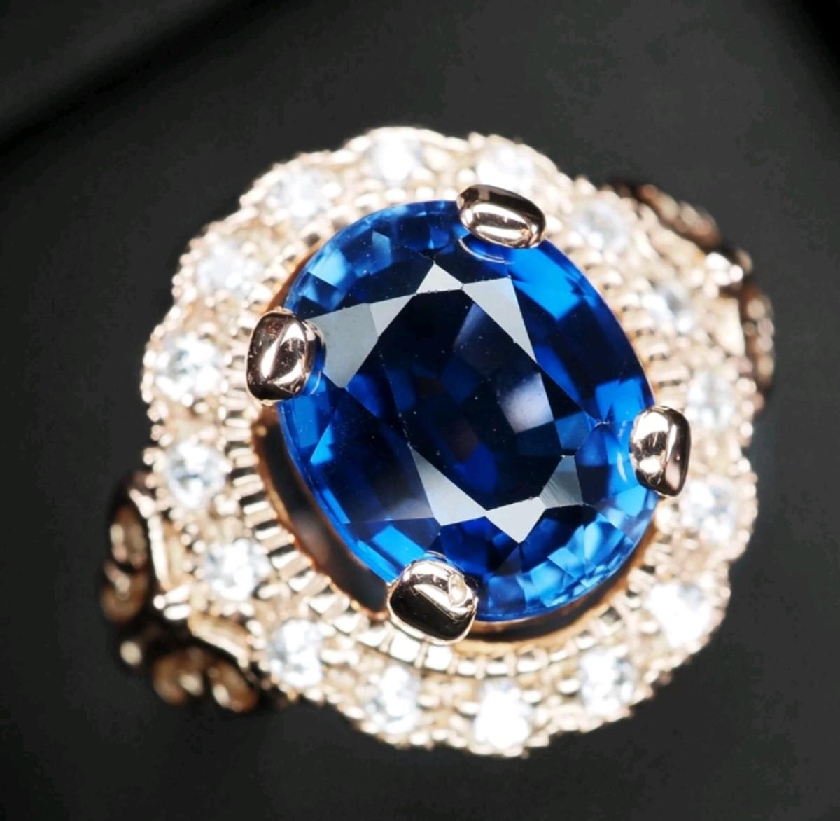 Invaluable Royal Blue Sapphire 4.04Ct 925 Sterling Silver Rose Gold Plated Ring
