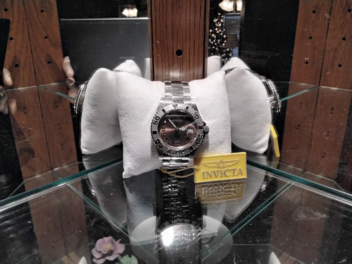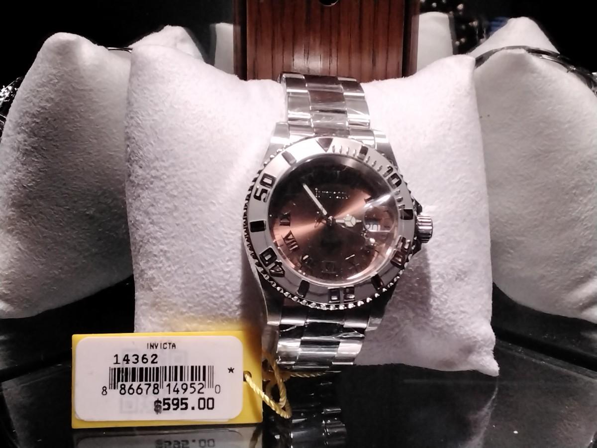 New in box! Invicta Invicta Angel 14362 Women's Round Brown Analog Date Roman Numeral Watch Brand, Seller, or Collection Name Invicta Angel Model Number 14362 Part Number 14362 Item Shape Round Dial Window Material Type Mineral Display Type Analog Clasp Fold Over Clasp with Safety Catch Case Material Stainless Steel Case Diameter 40 millimeters Case Thickness 9 millimeters Band Material Stainless Steel Band Length Women's Standard Band Width 20 millimeters Band Color Silver Tone Dial Color Brown with Silver Tone and Black Detail Bezel Material Stainless Steel Bezel Function Unidirectional Special Features Luminous Hour and Minute Hands Luminous Seconds Hand Date Window with Bubble Lens Screwdown Crown Movement Swiss Parts Movement Water Resistance Depth up to 200 Meters