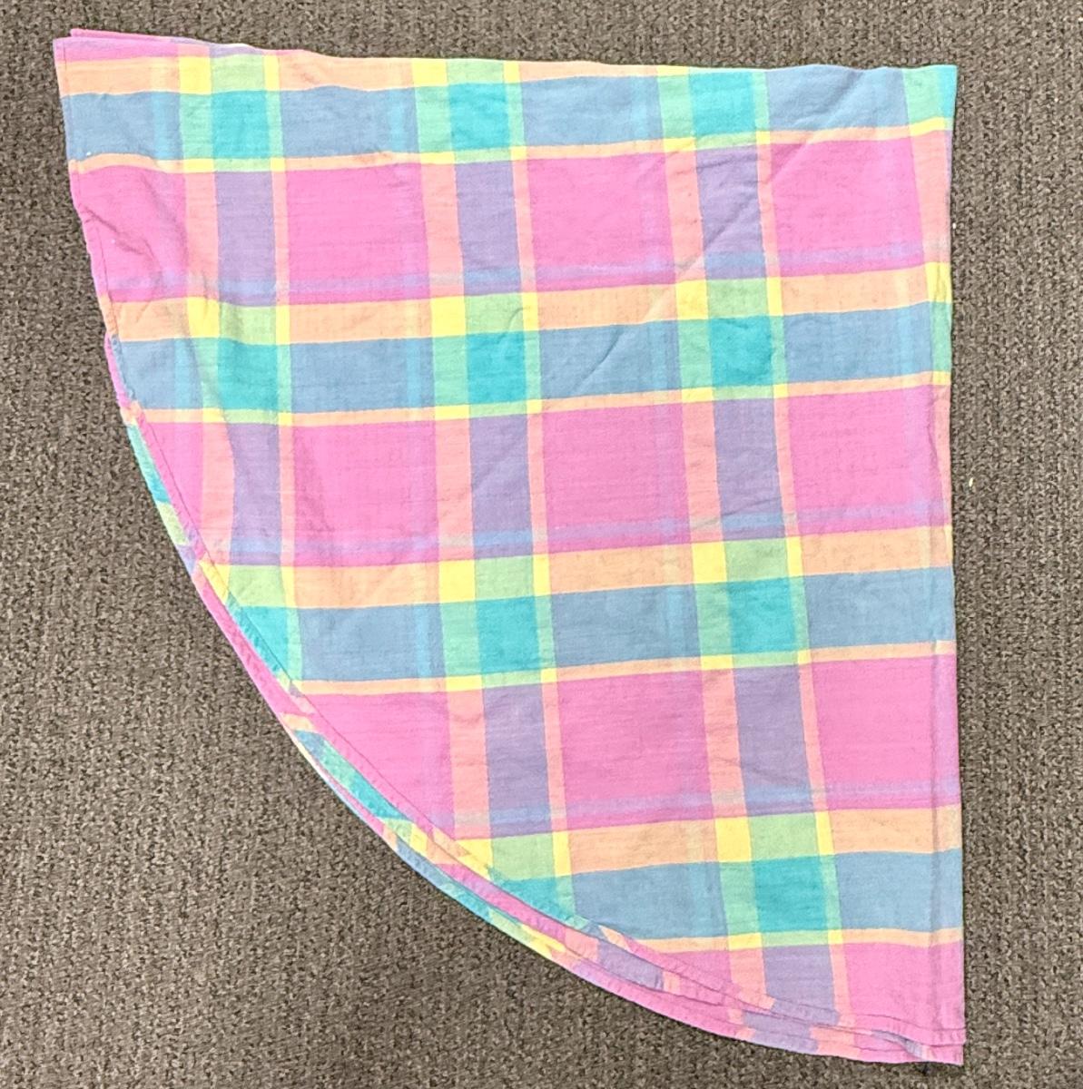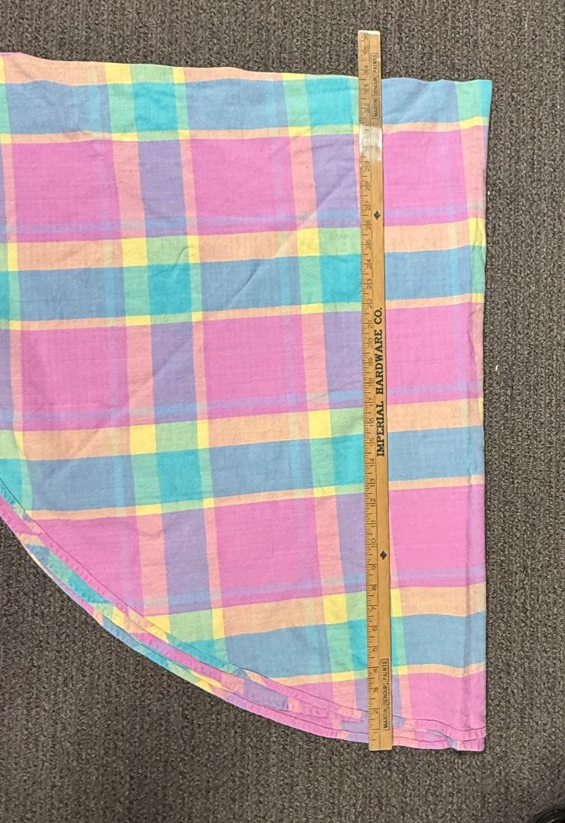 Vintage Plaid Tablecloth pink blue yellow Spring Colors round 68" dia