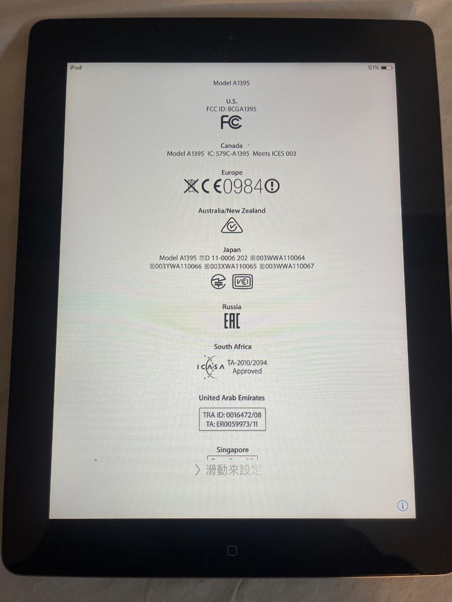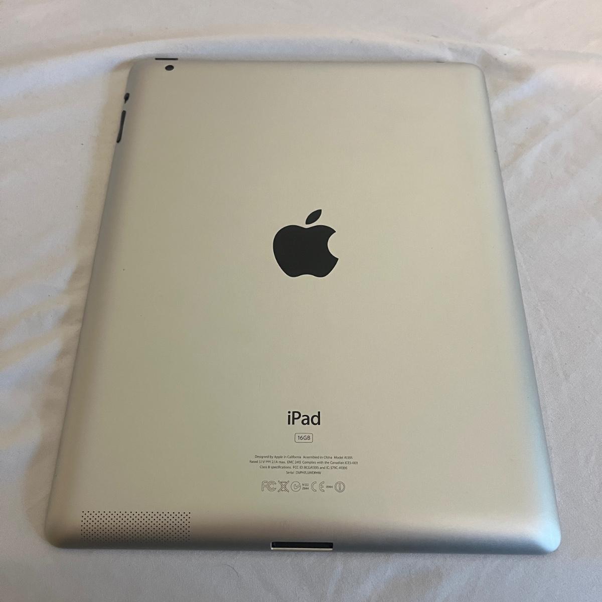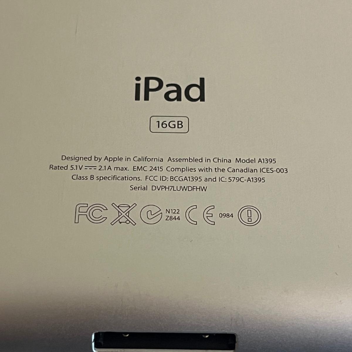 This iPad powered on when plugged in and has been reset. Also includes 30 pin charging cable.