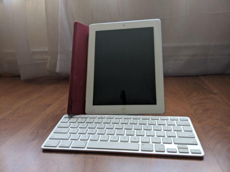 iPad model A1416. 3rd generation. Has been reset to factory settings. Comes with keyboard, charger and cable