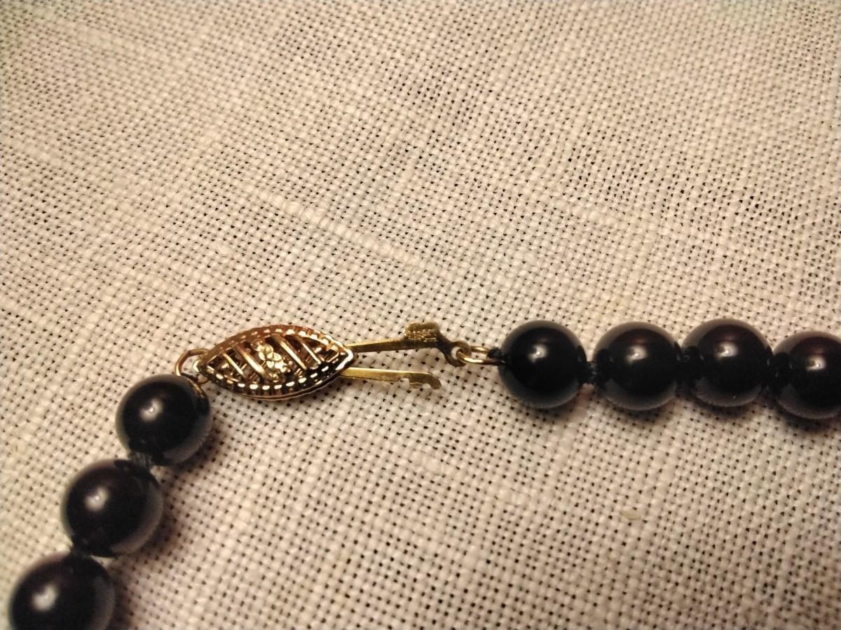 IPS Onyx and Pearl Necklace 14K Beads and Clasp