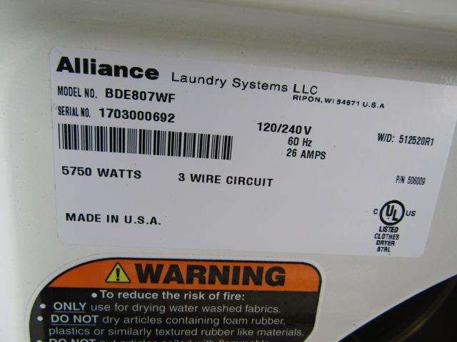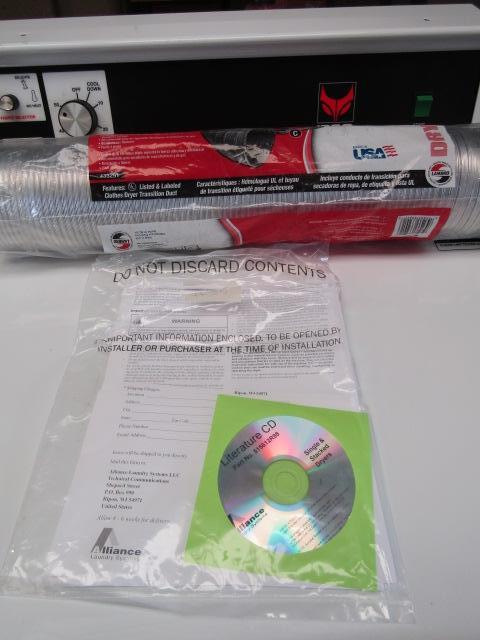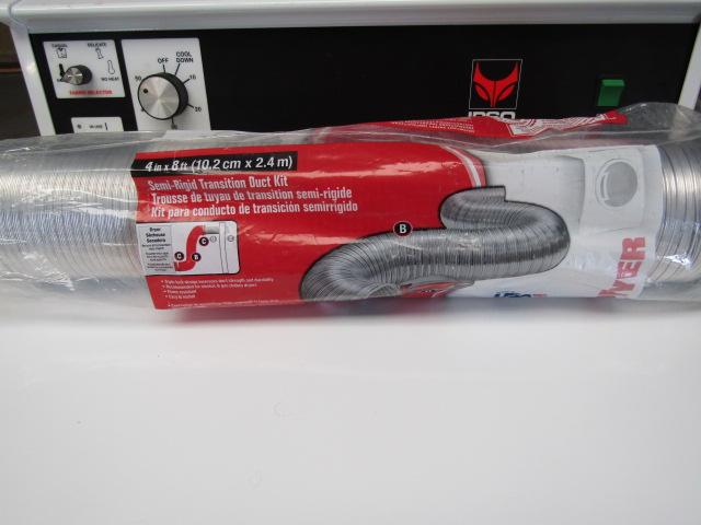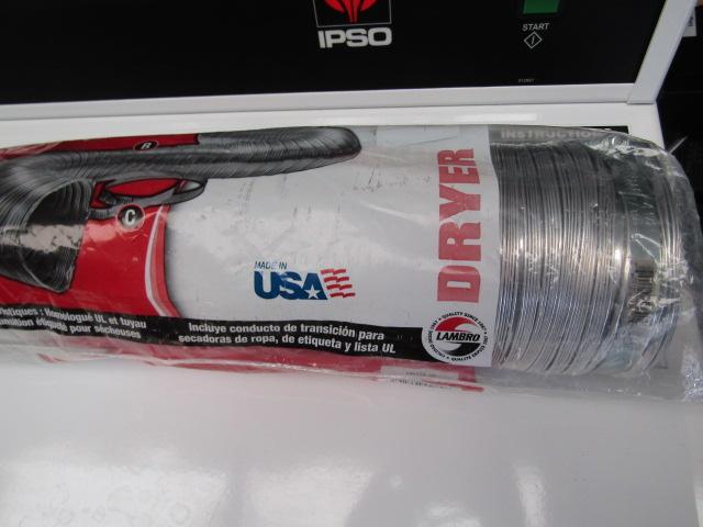 IPSO Industrial Tumble Clothes Dryer- Model BDE807WF. Seller states item is in working condition. Includes a section of venting. Some paperwork included. Please see all pictures.