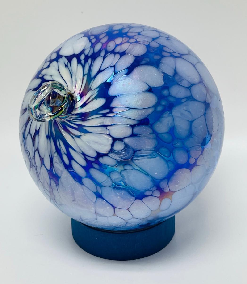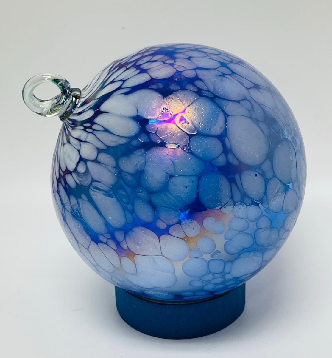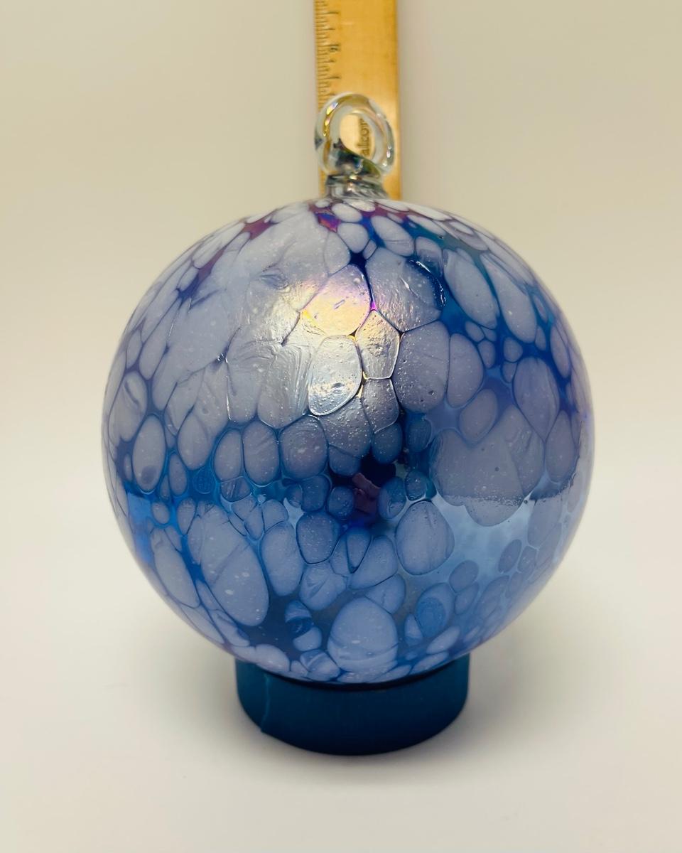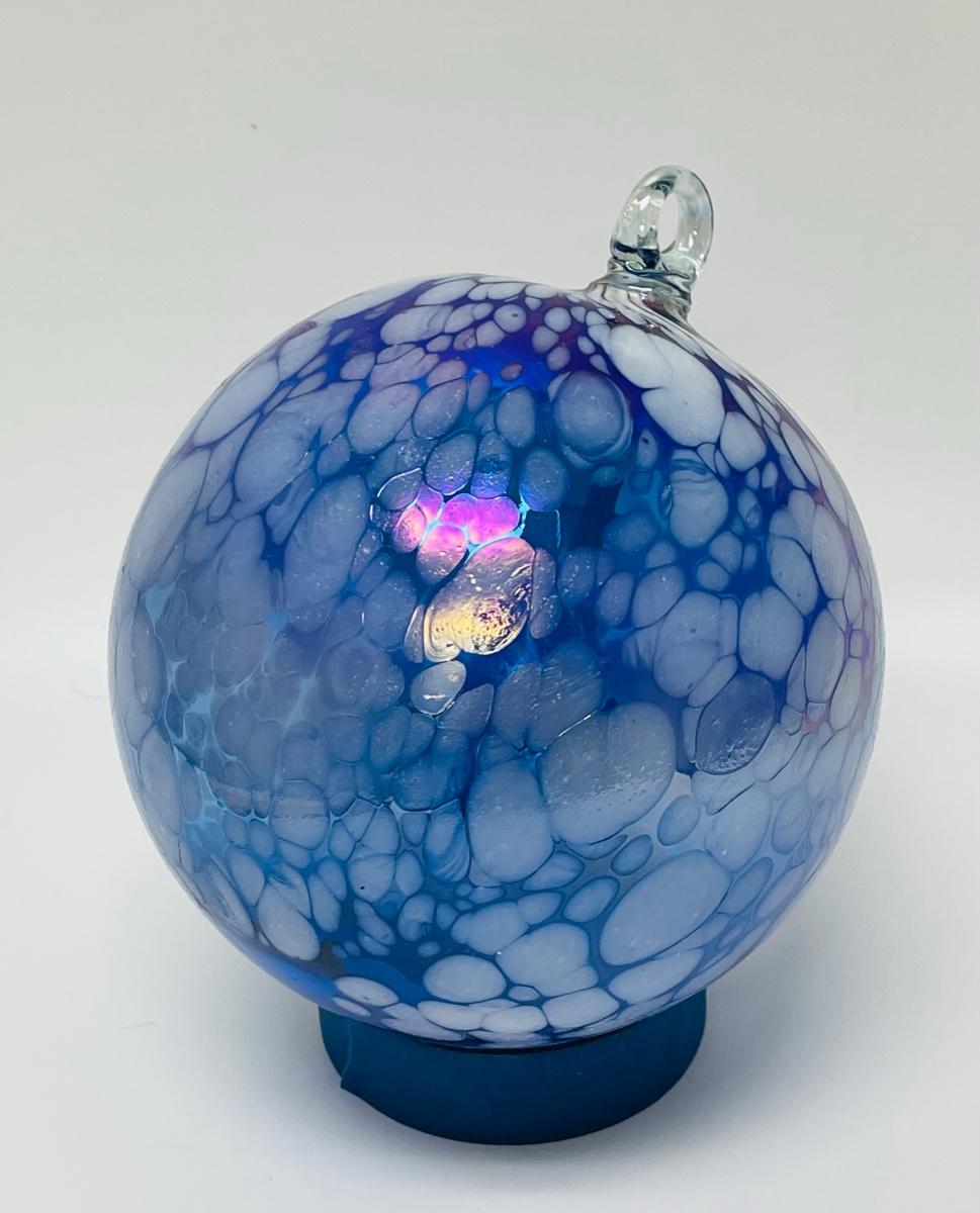 Iridescent Blue & White Blown Art Glass Ornament Ball