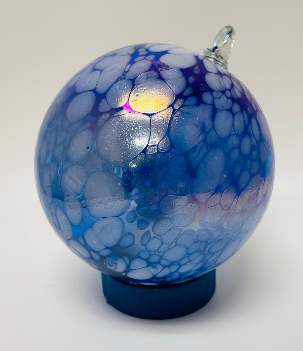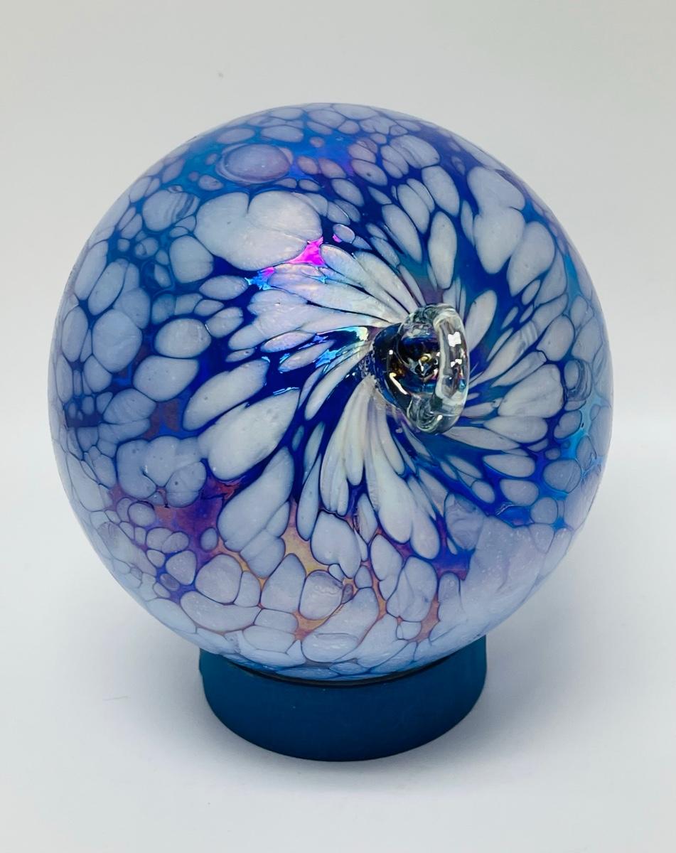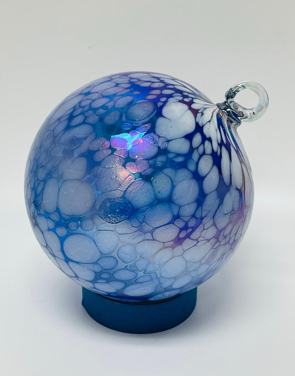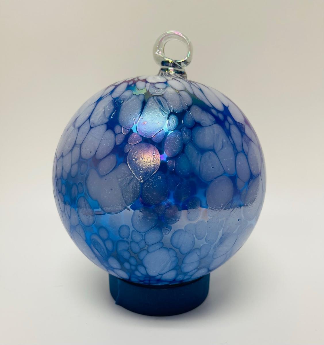 Iridescent Blue & White Blown Art Glass Ornament Ball