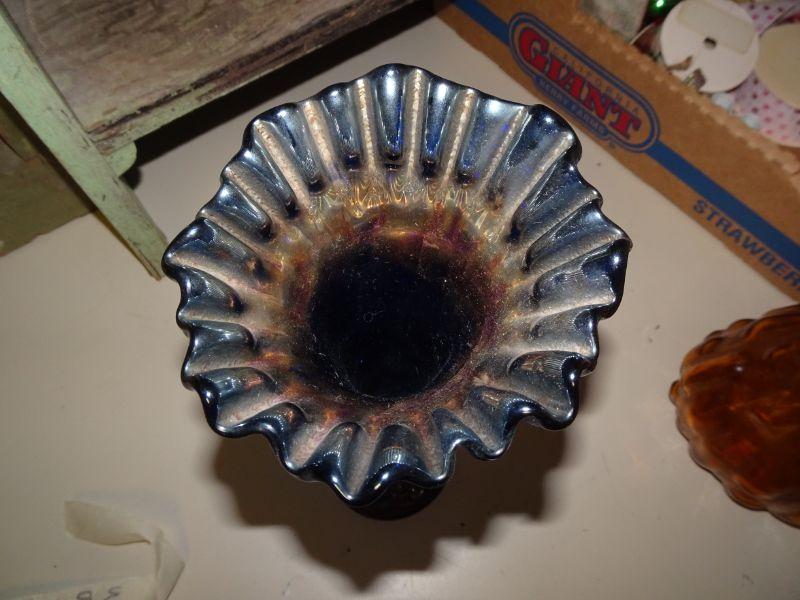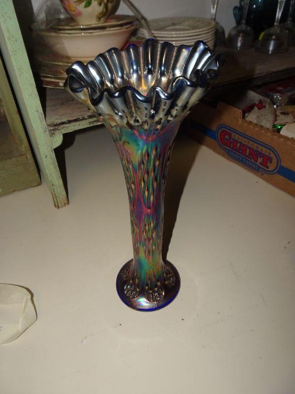 Iridescent Finial Vase - Gorgeous, has small nick under base - not sure if it's a firing flaw or a chip