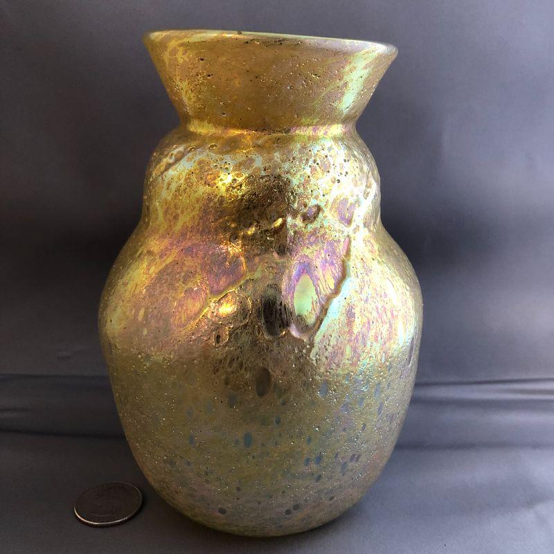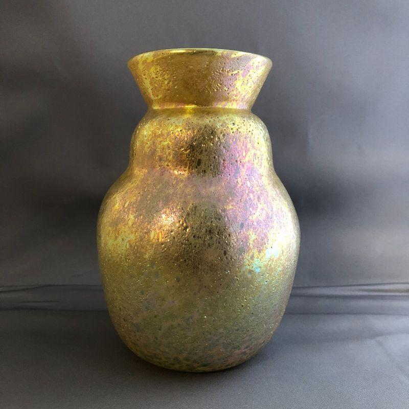 Iridescent Gold Tectured Vase 6.25"- signed O&F, Greg Held, 1981 J3