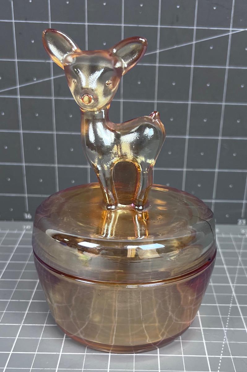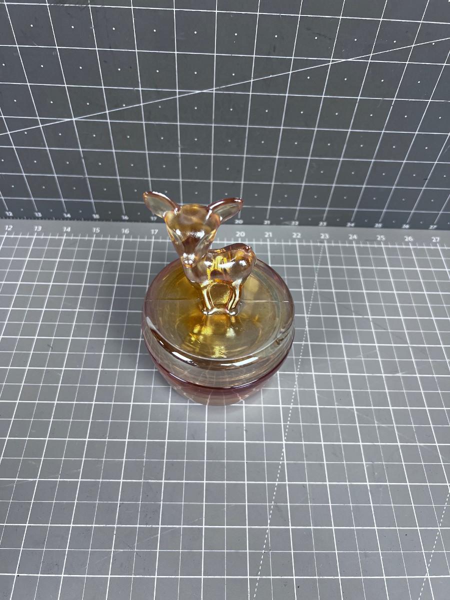 Iridescent  Powder Jar with DEER on top