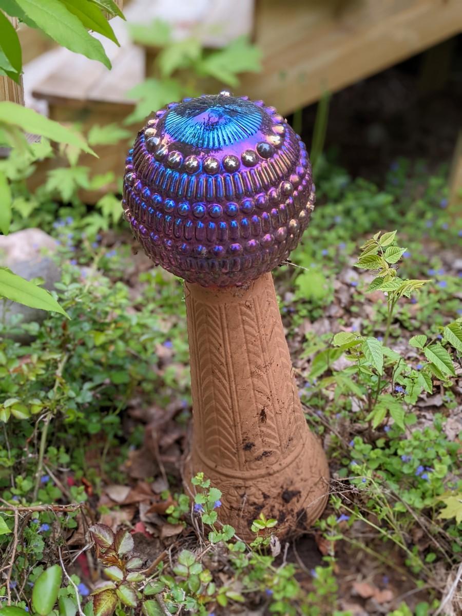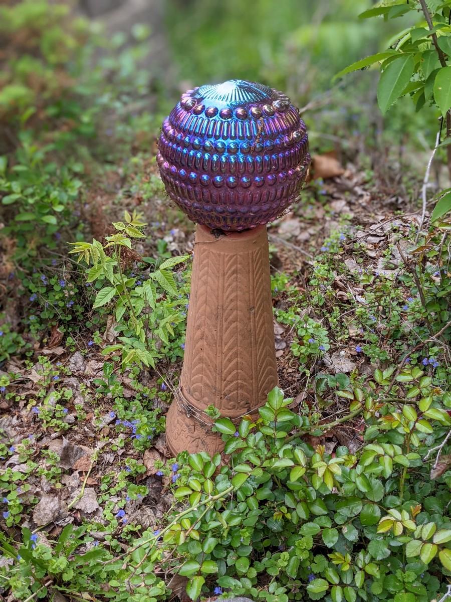 Iridescent Reflection Ball on Nice Terra Cotta Stand