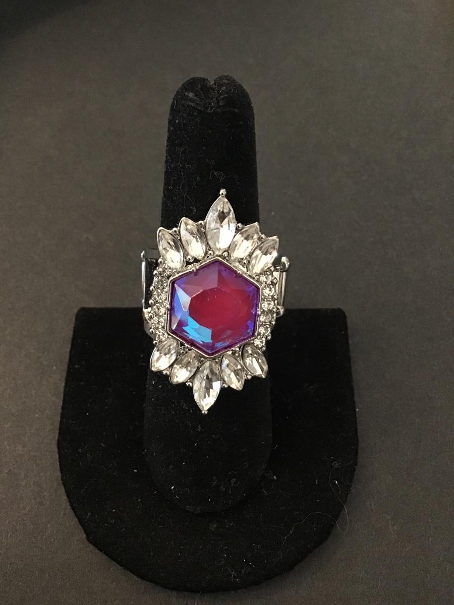Iridescent rhinestone stretch ring