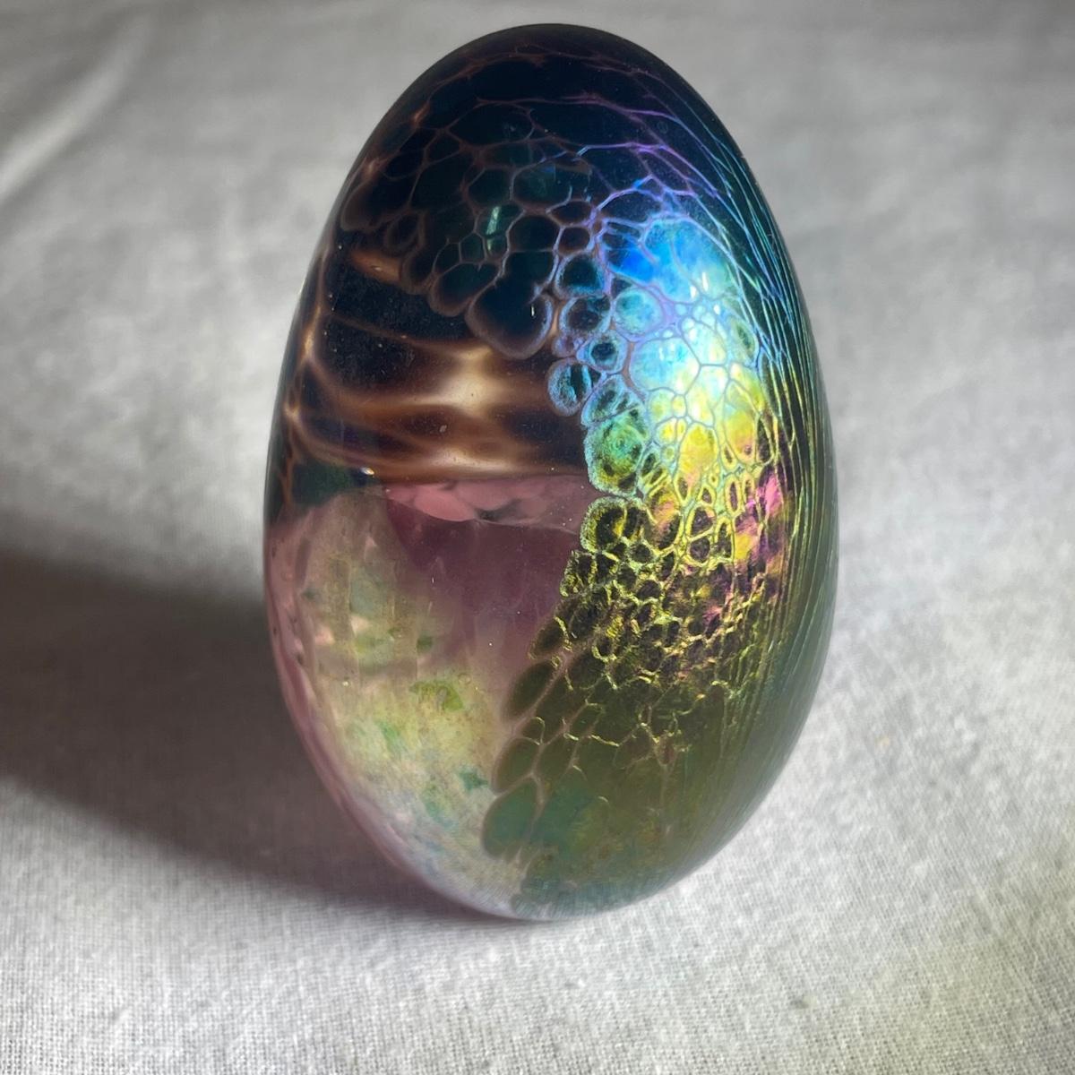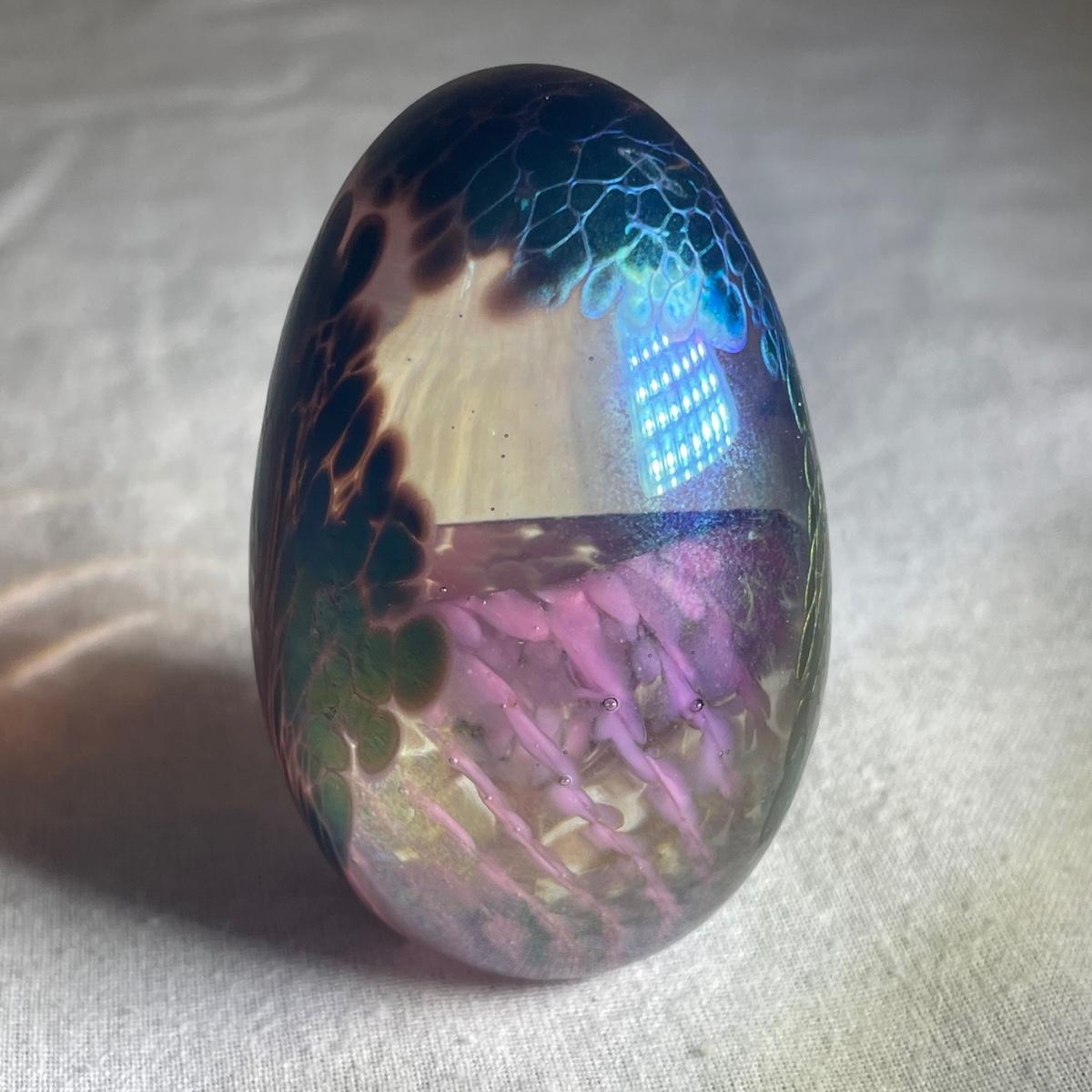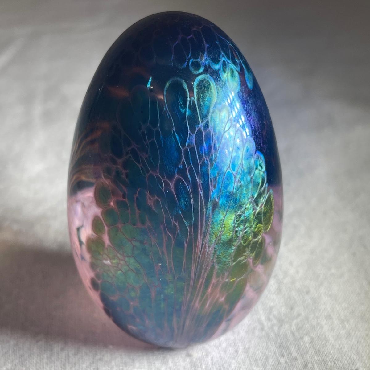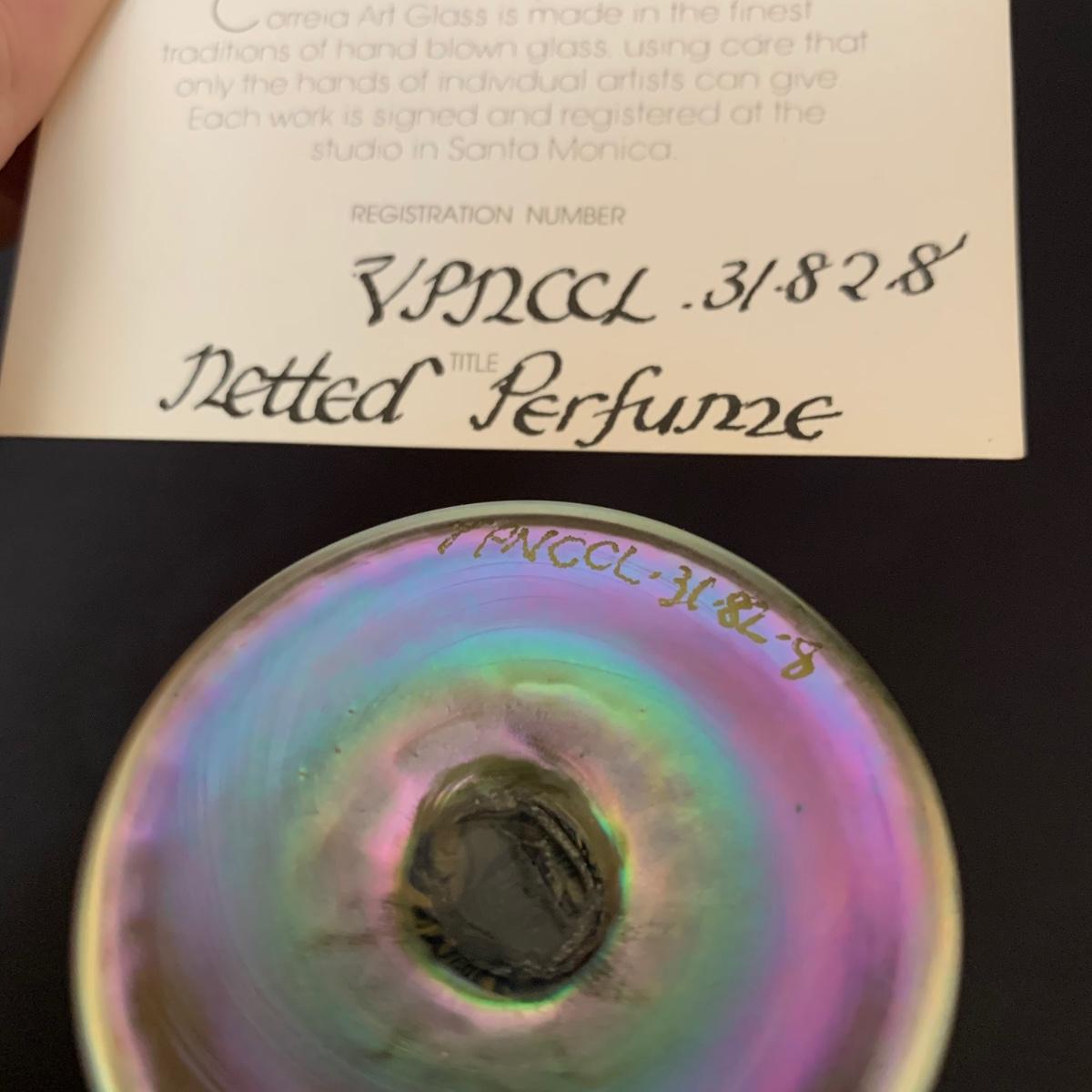 Correia Art Glass Iridescent Netted Perfume Bottle w/ Artisan Glass Egg (LR-RG)