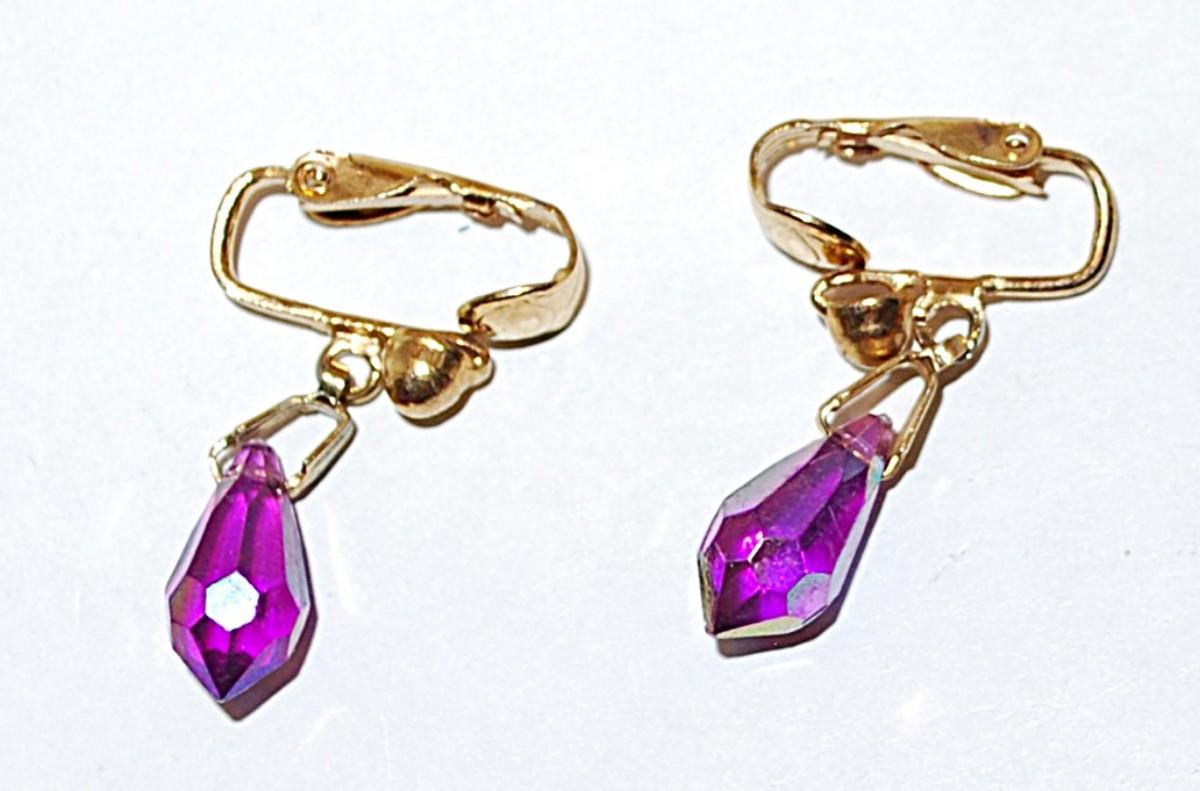 Iridescent Single Prism Bead EARRINGS Set with Gold Tone SNAP Clasp