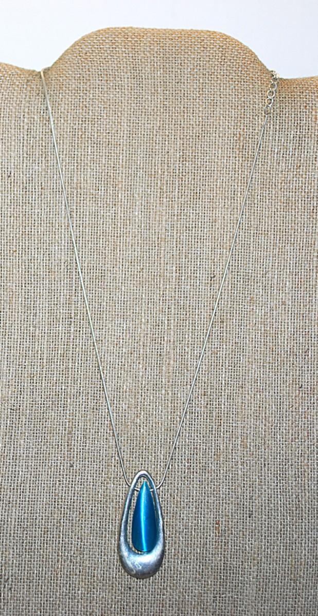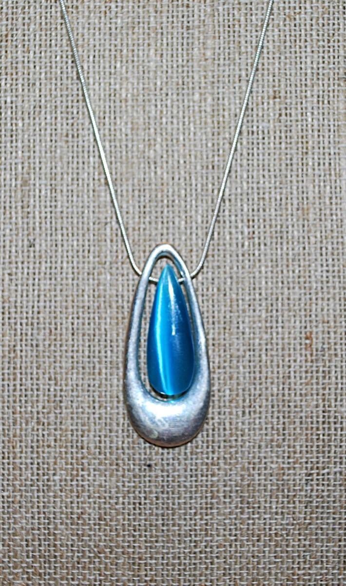 Iridescent Style BLUE ACRYLIC Dangle PENDANT/NECKLACE Combo with Silver Tone Dangle Surround and Delicate Necklace Chain and Lobster Clasp 22" L
