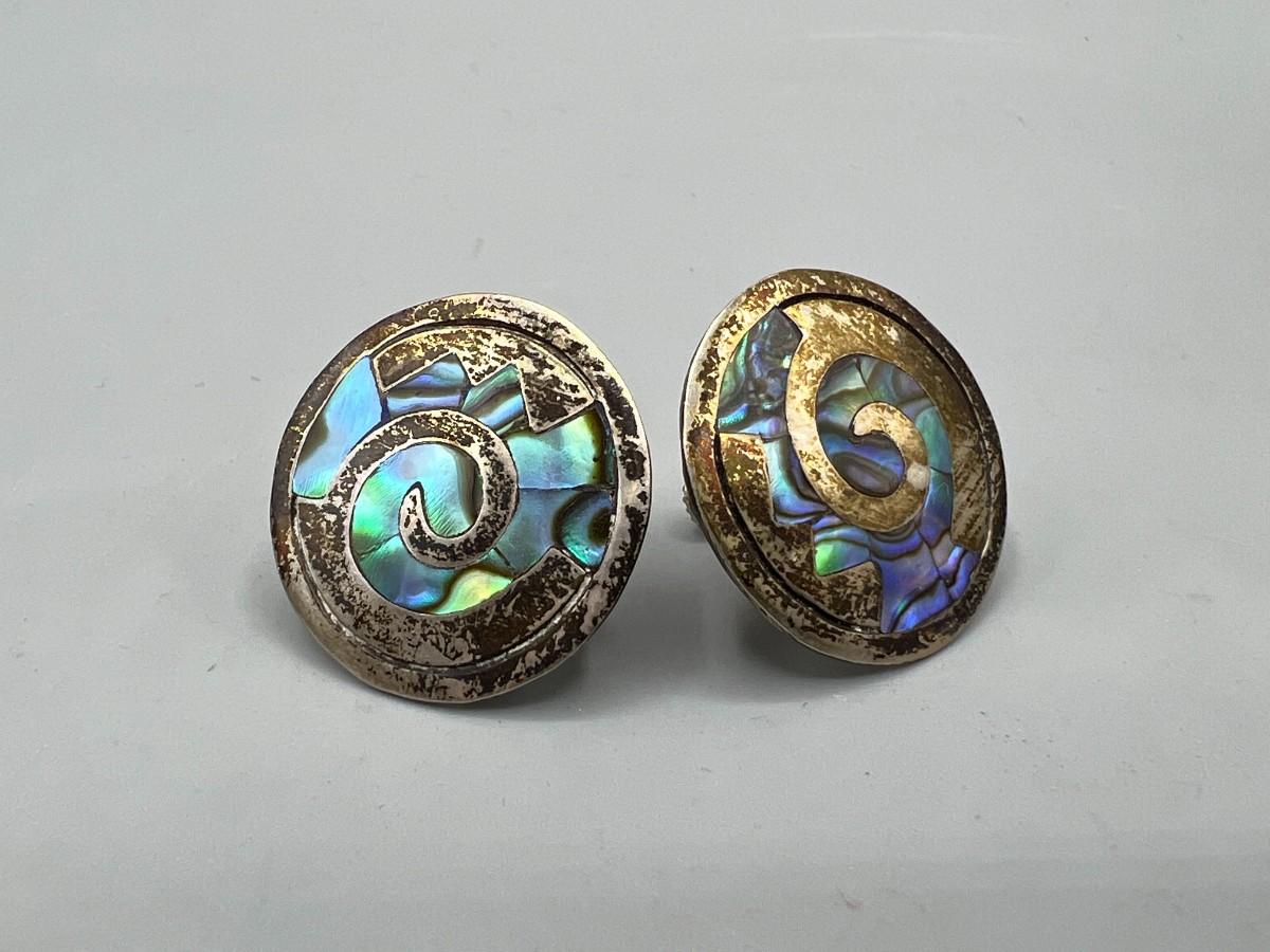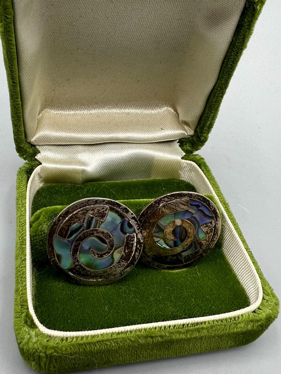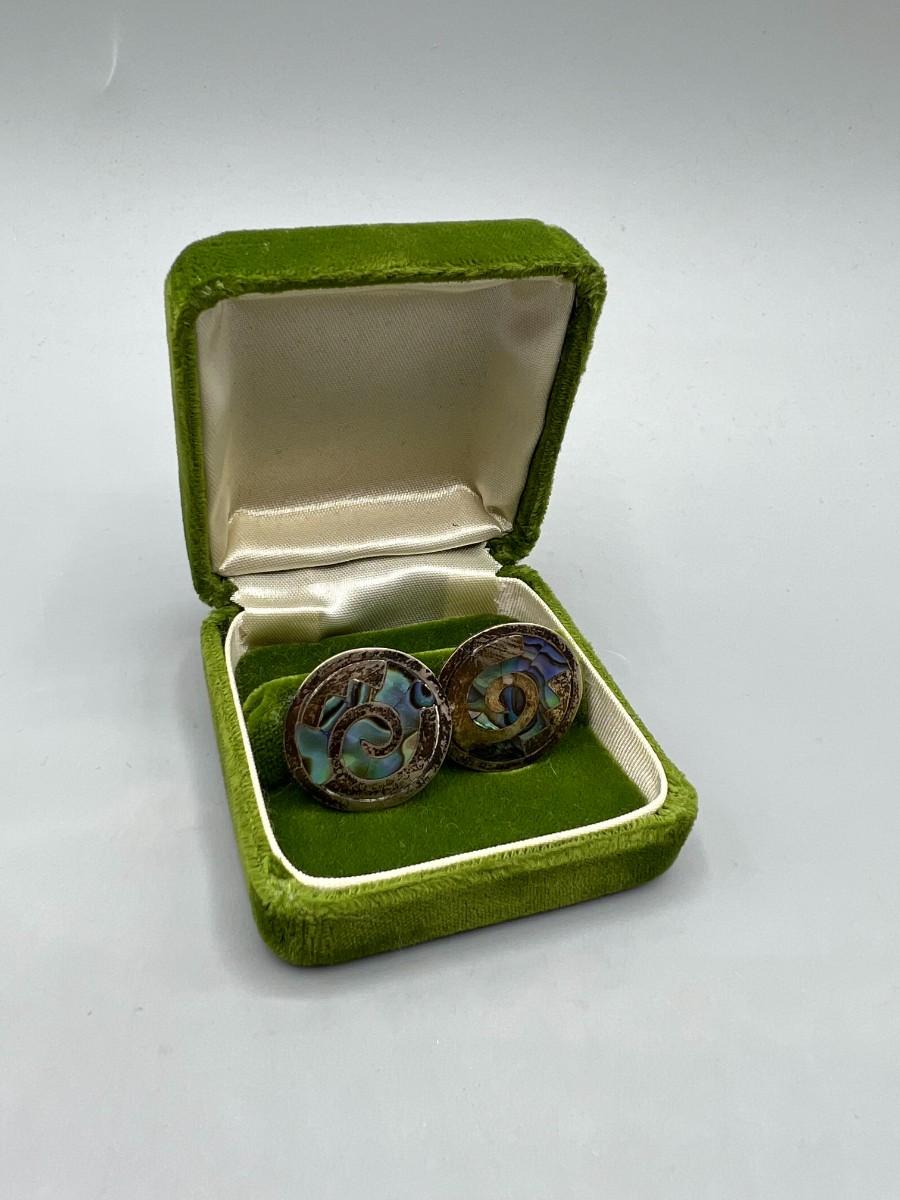 Iridescent Swirl Design Mens Cufflinks, there is no significant damage to the cufflinks and is in good wearable condition. Check pictures for more details and for sizing.