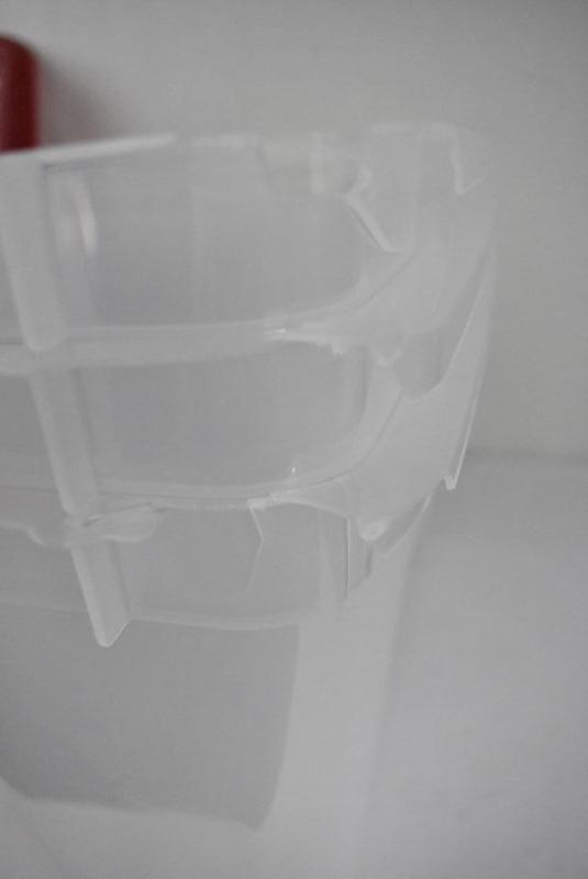 Iris 53 Quart Holiday Storage Tote, 3 Pack, Red & Clear - Damaged Corners/Lids/Handles, Still Useable