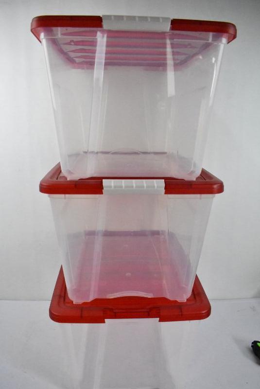 Iris 53 Quart Holiday Storage Tote, 3 Pack, Red & Clear - SEE DESCRIPTION