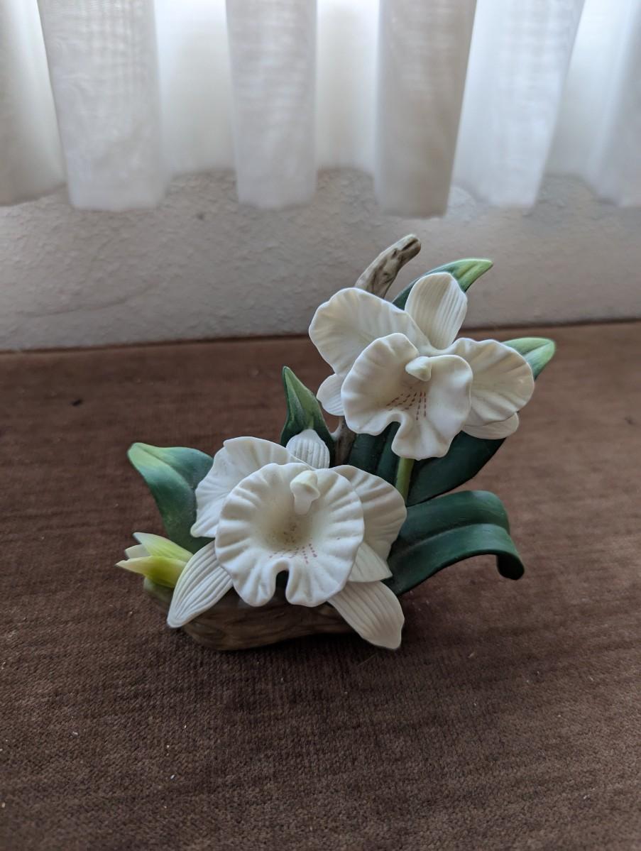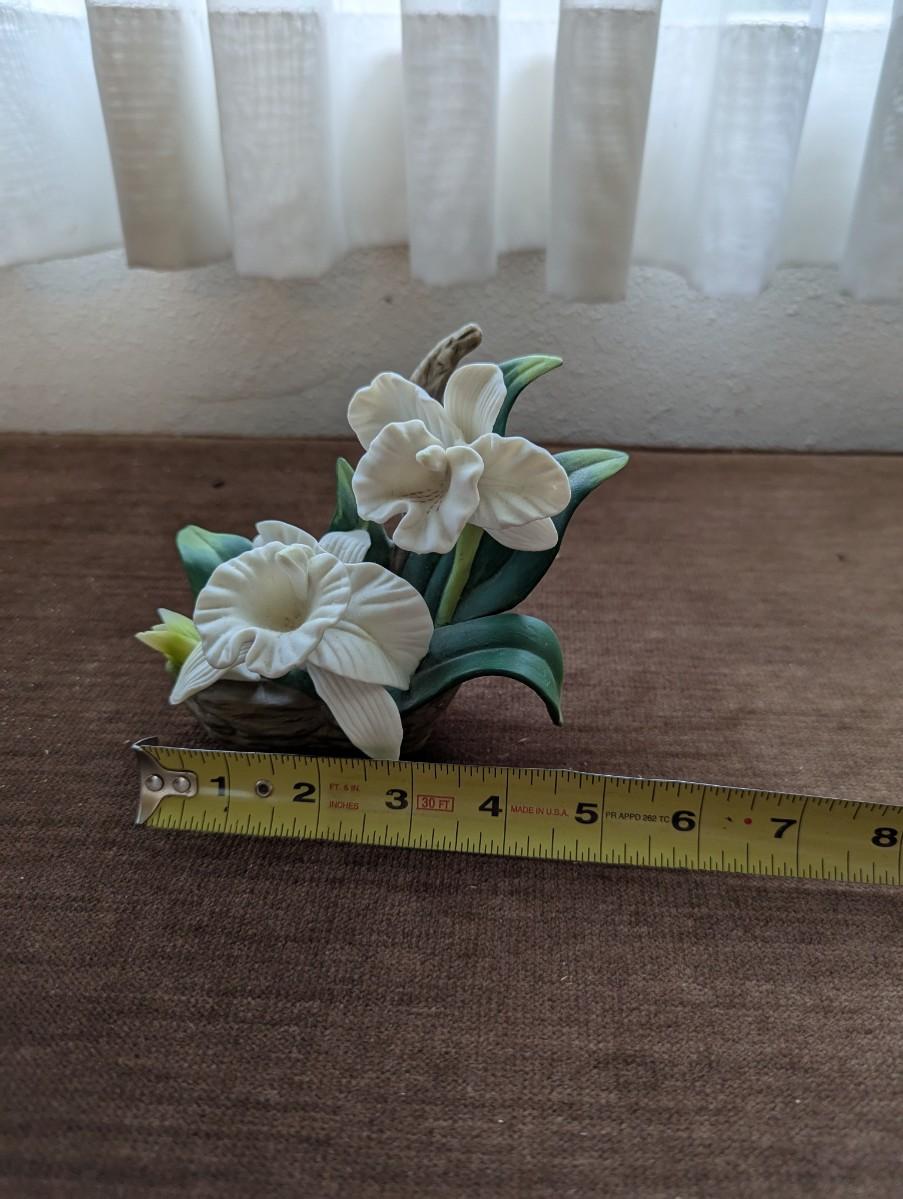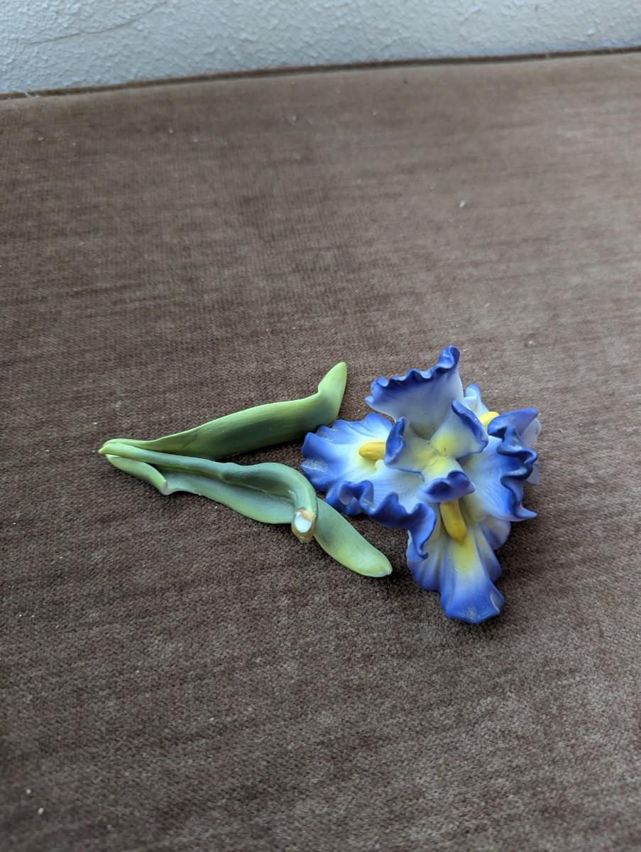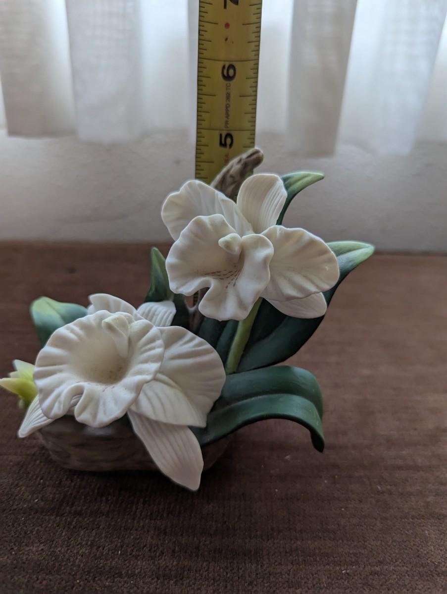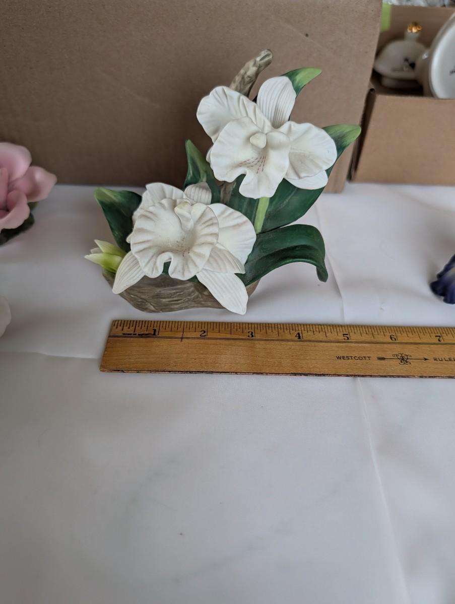 Hand painted bisque Rose, Iris, and Orchid figurine.
