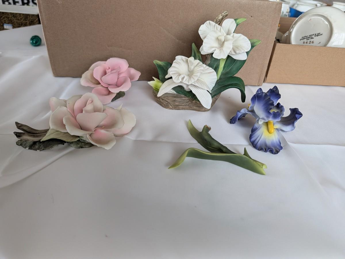 These are hand painted porcelain flowers that are very delicate. The Iris is broken,
