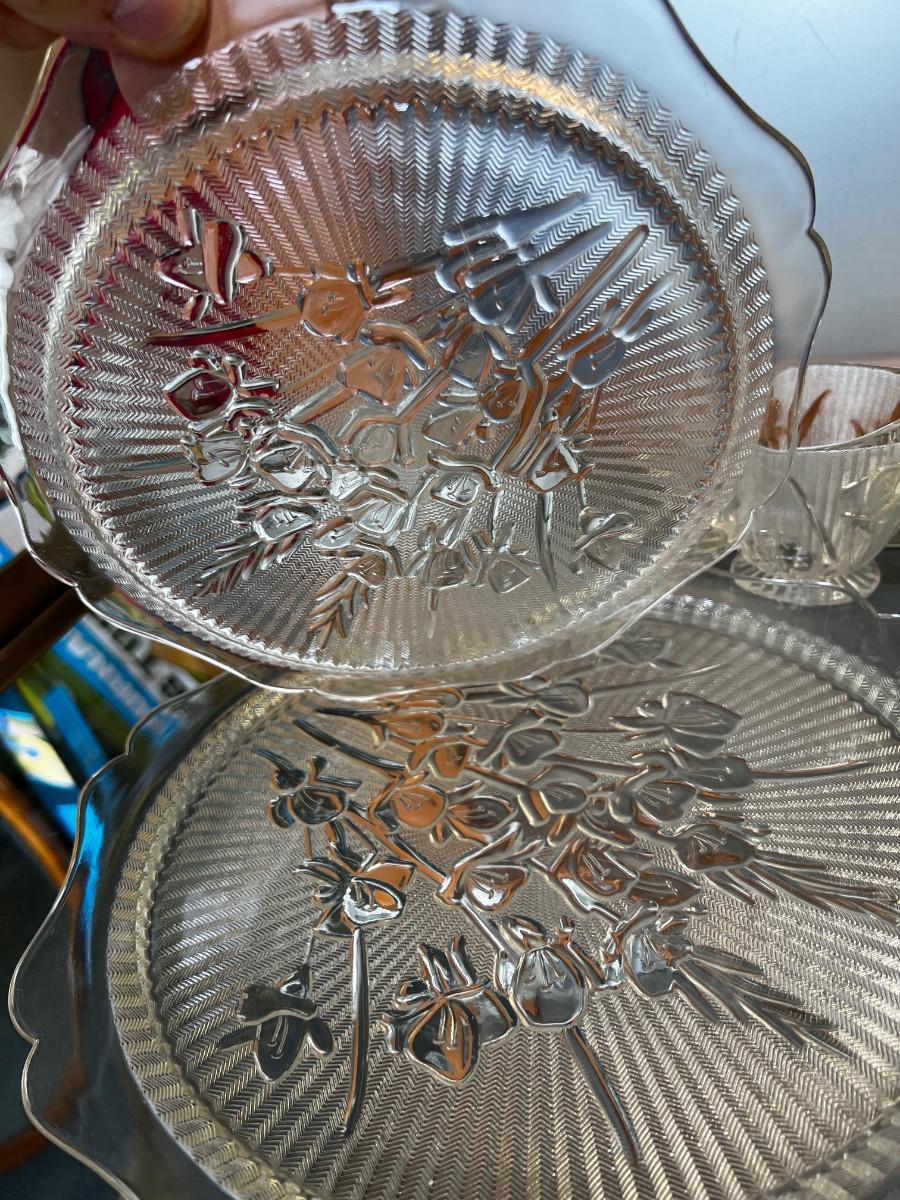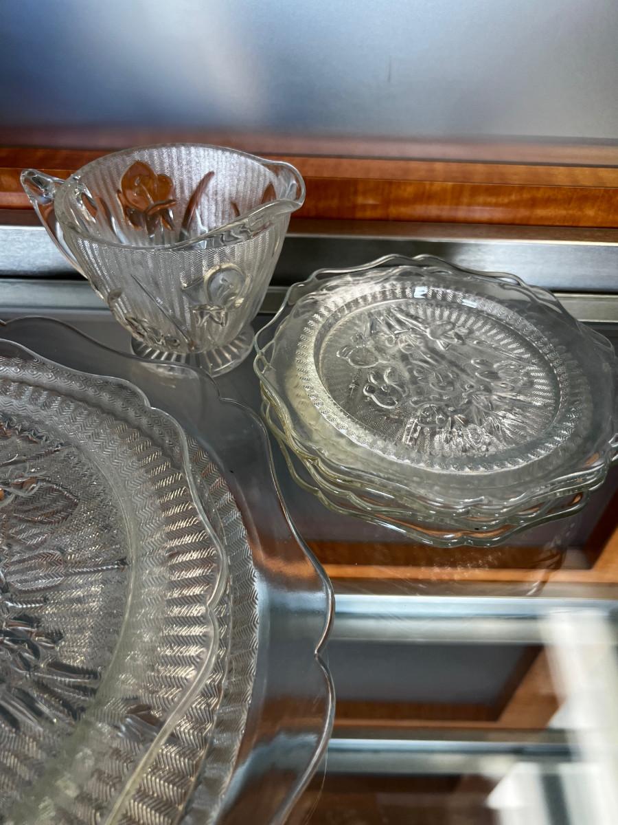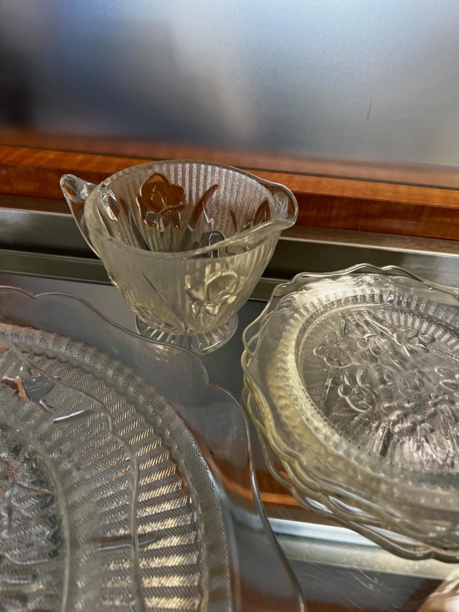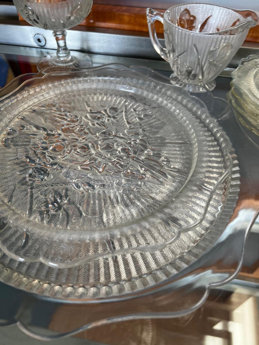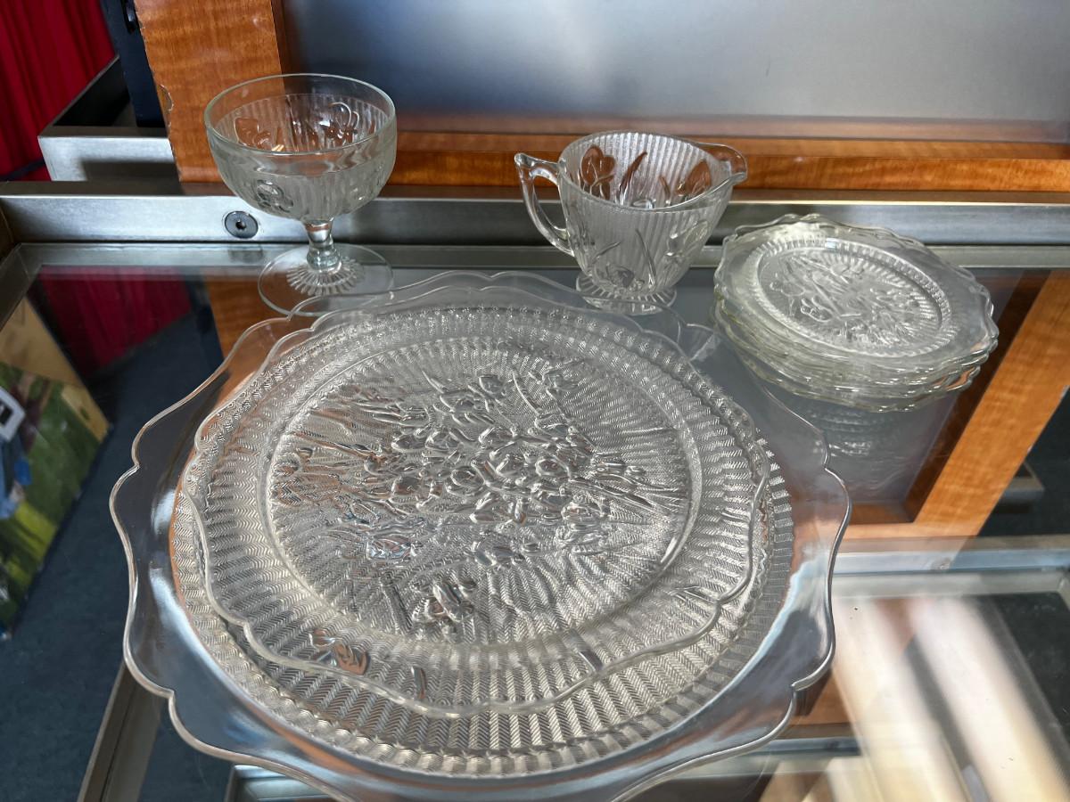 Iris and Herring Bone Clear Glass Depression Glass LOT