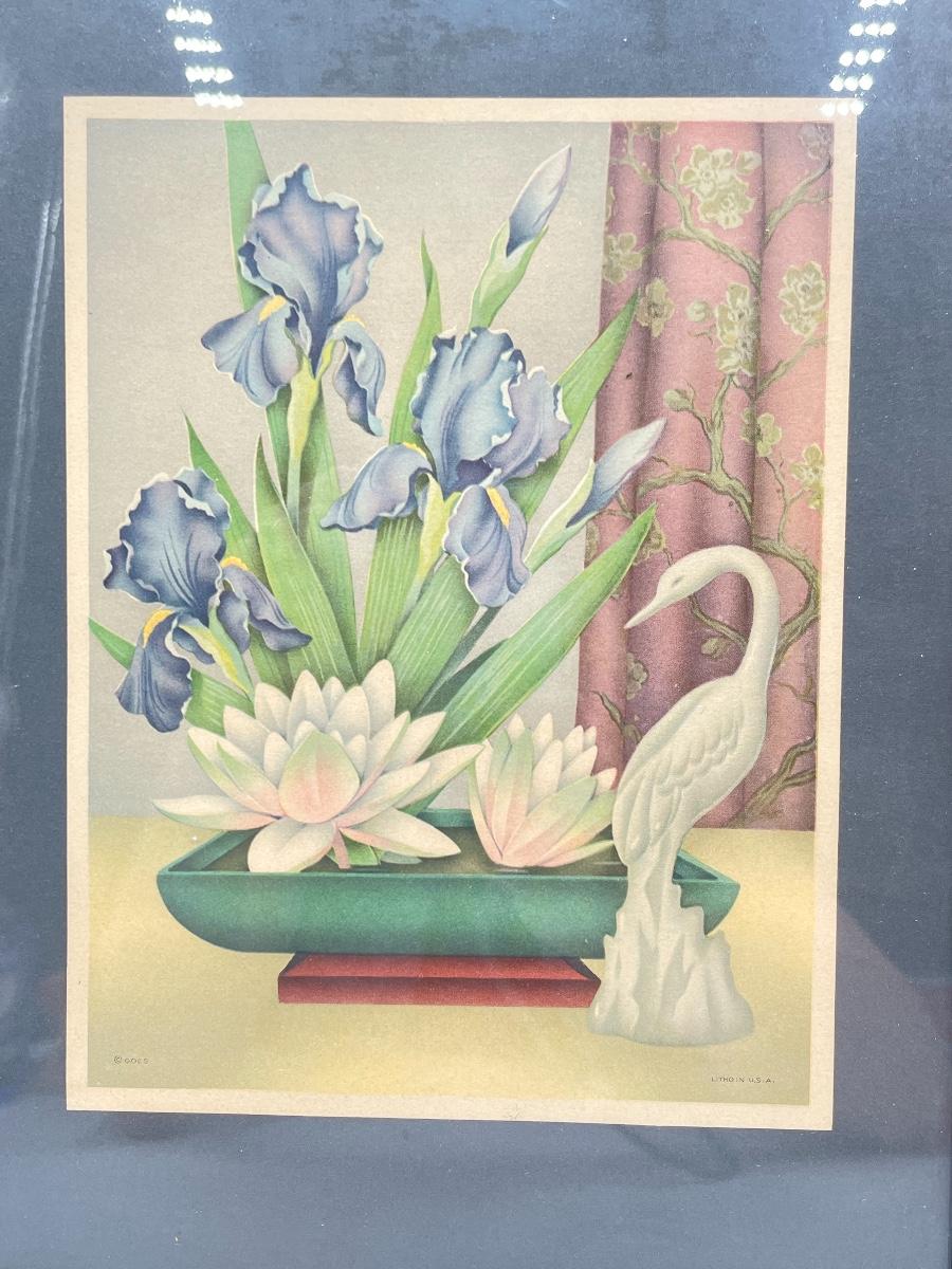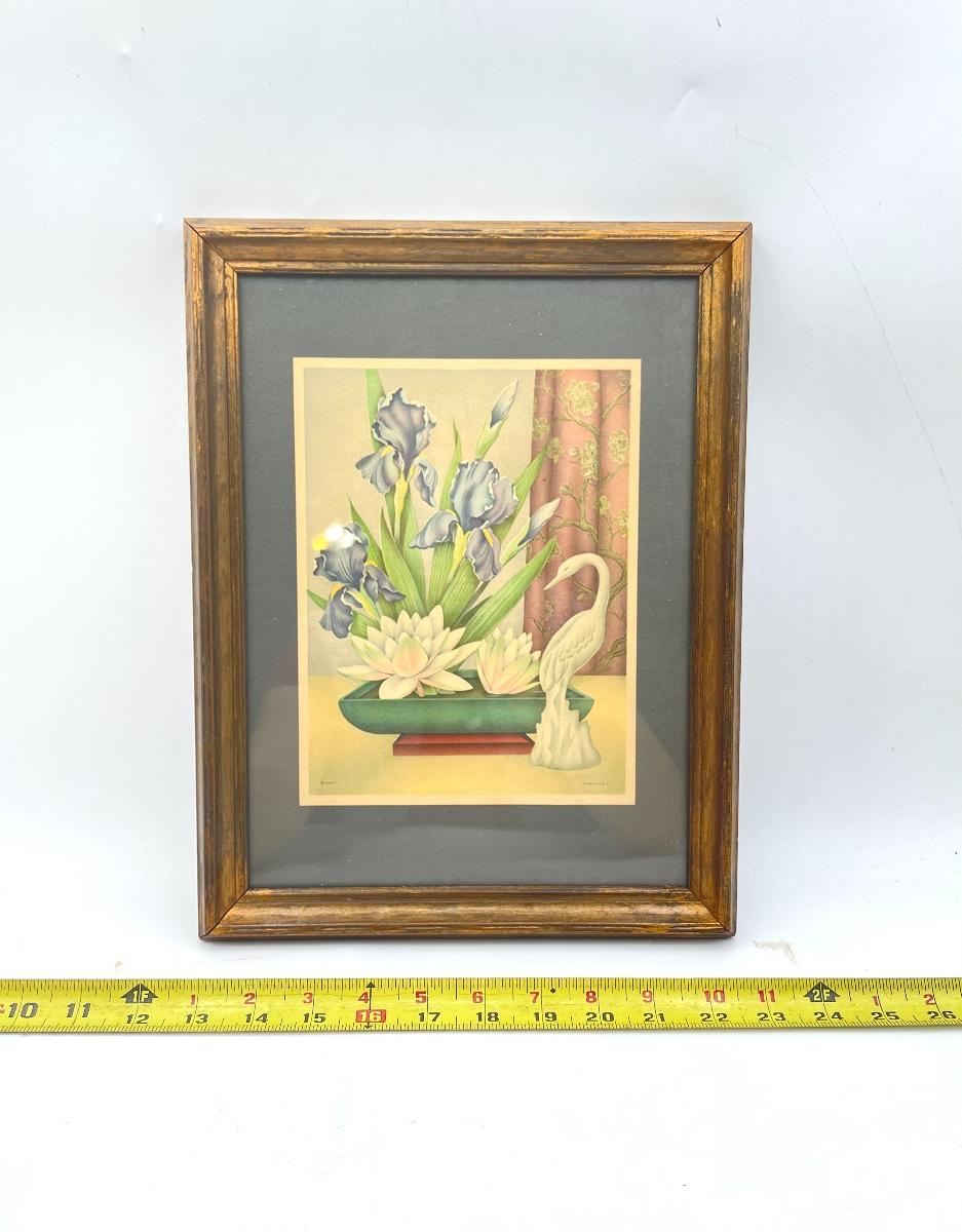 IRIS AND WATER LILY FRAMED LITHOGRAPH