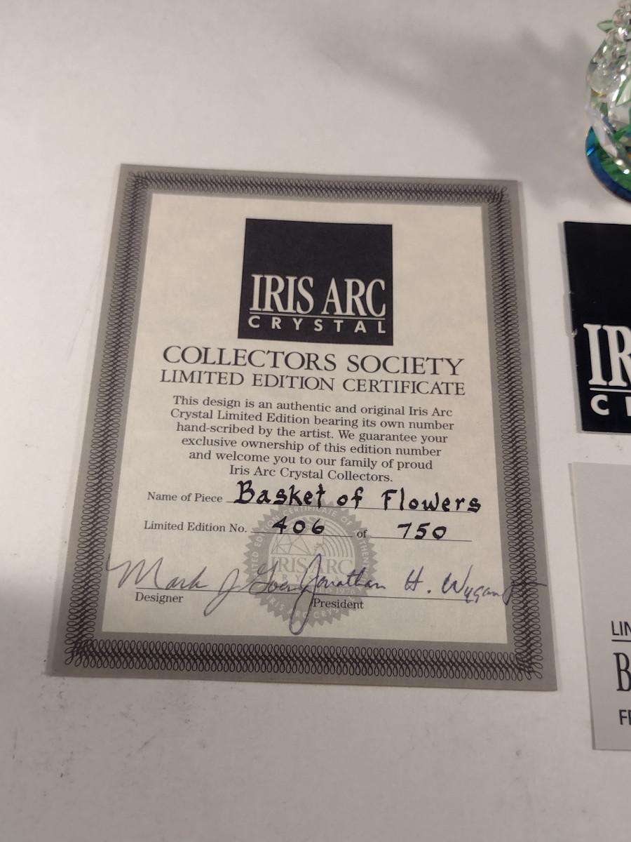 Iris Arc 'Basket of Flowers' Floral Collection Rainbow Crystal Figurine- Limited Edition 406/750. Original box included.