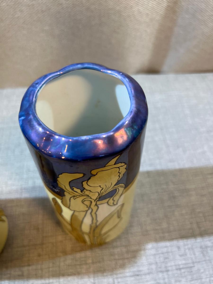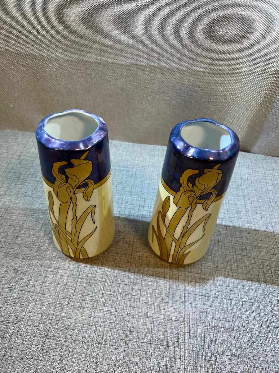 Iris Luster Ware Art Deco Style Era Vases, Pair