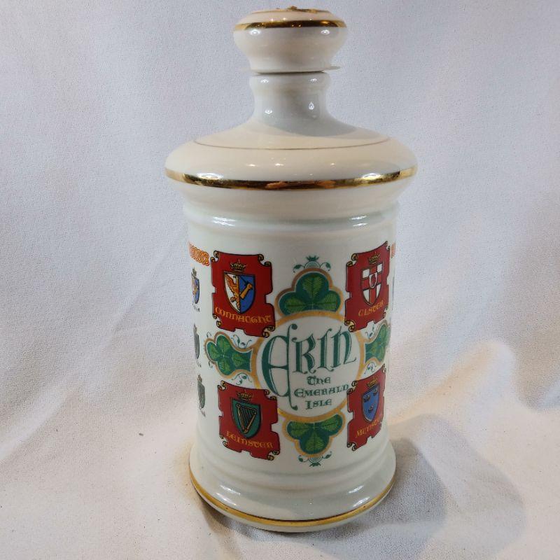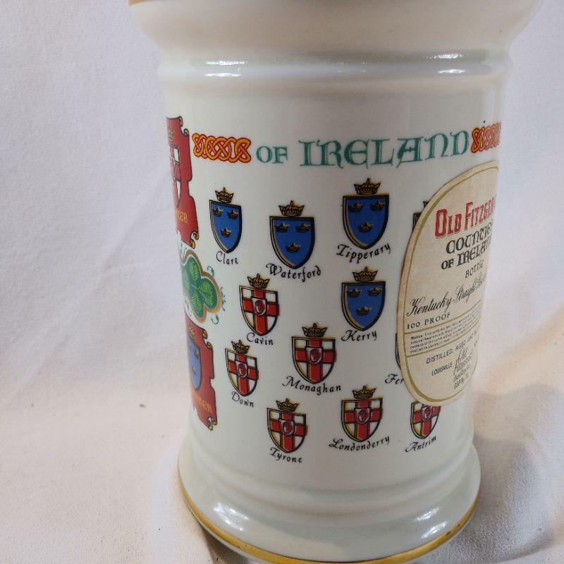 This is a collectible Irish-Themed Whiskey Decanter: "Erin the Emerald Isle." Depicts the counties of Ireland. Old Fitzgerald - 1973 - Empty. It is 9-inches tall X 4 1/2-inches in diameter. Very good condition.