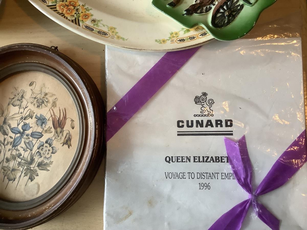 Irish & Florida ashtrays, clover, horseshoe, framed art, Queen Elizabeth-12 piece