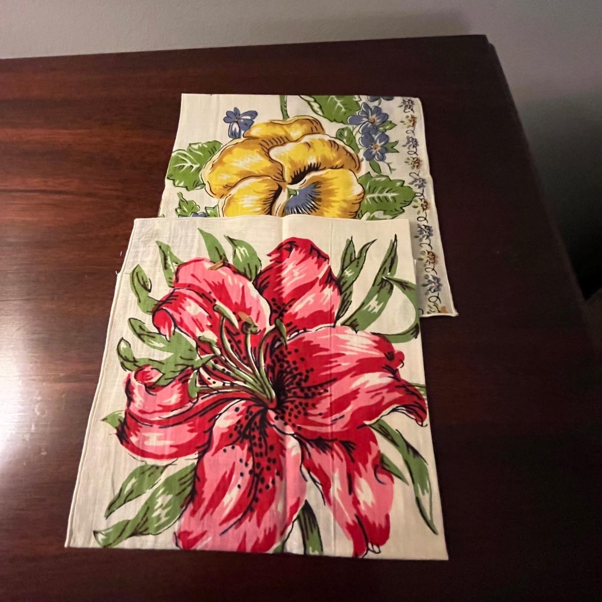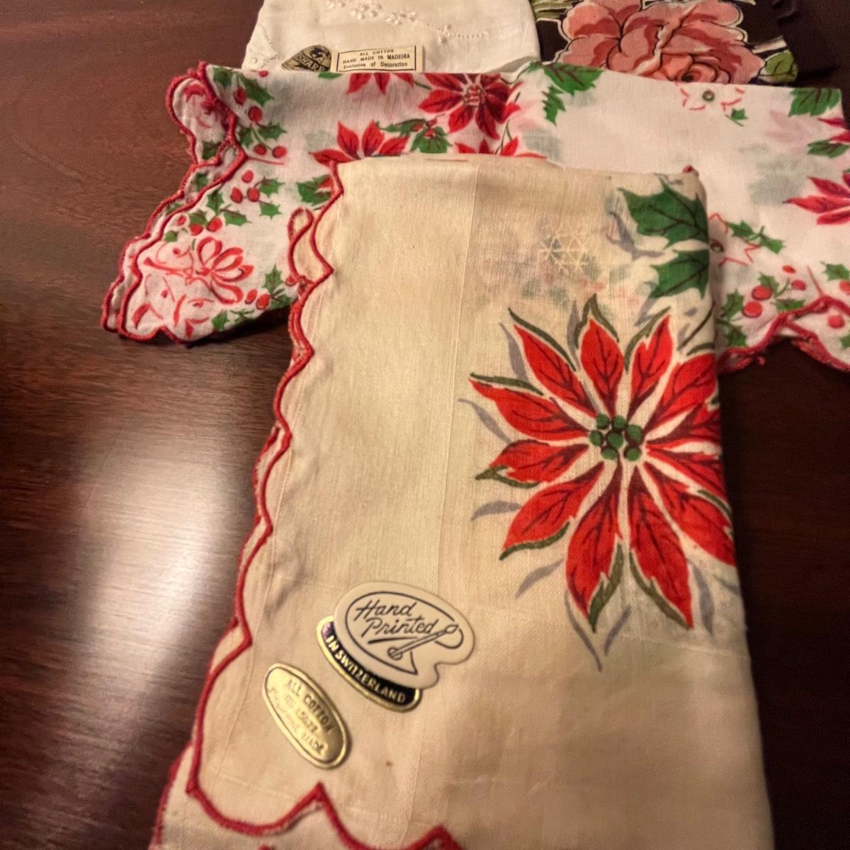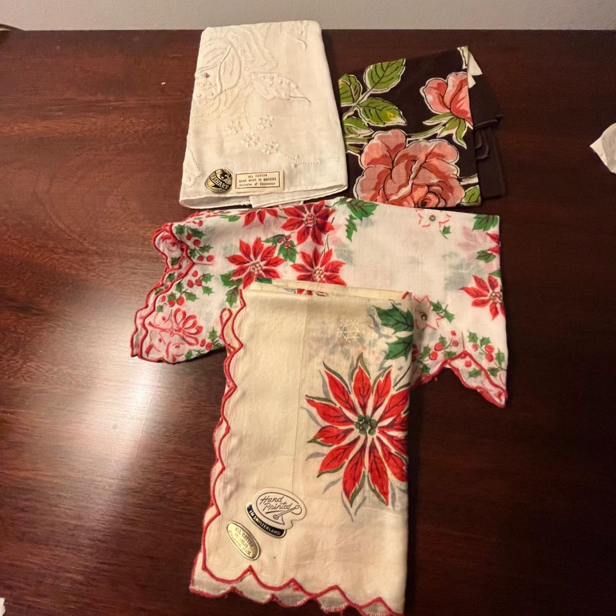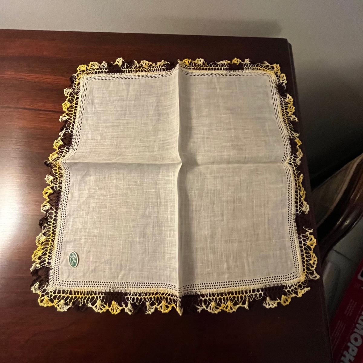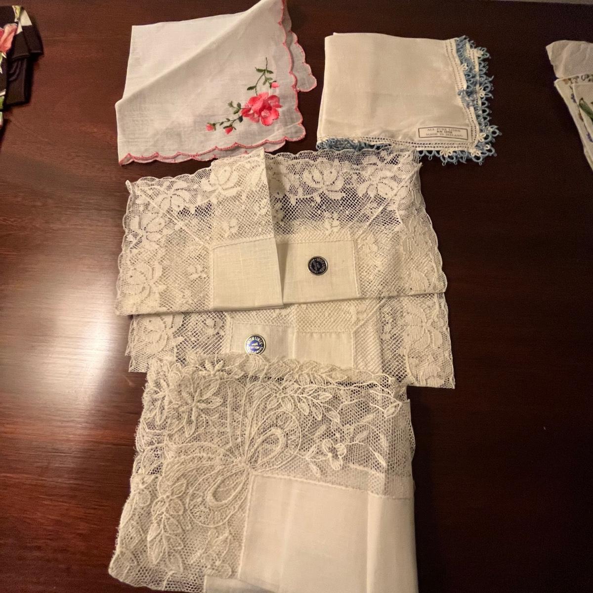 Lot includes five hankies marked Irish linen, one Madeiran linen and the rest are unmarked. Largest piece measures 12” x 12”.