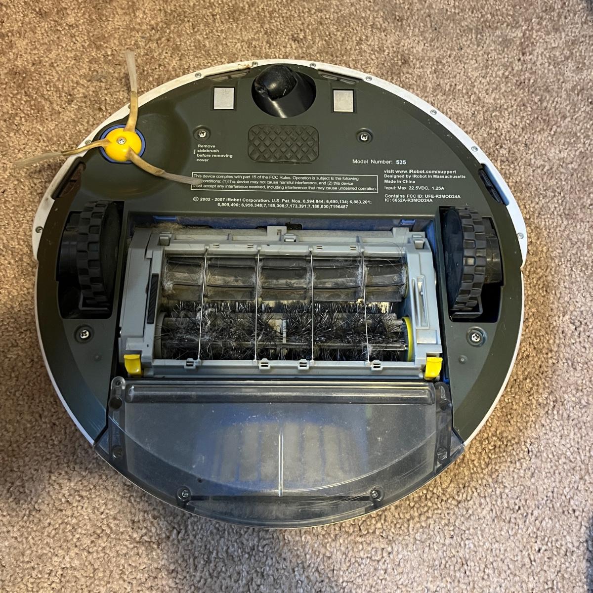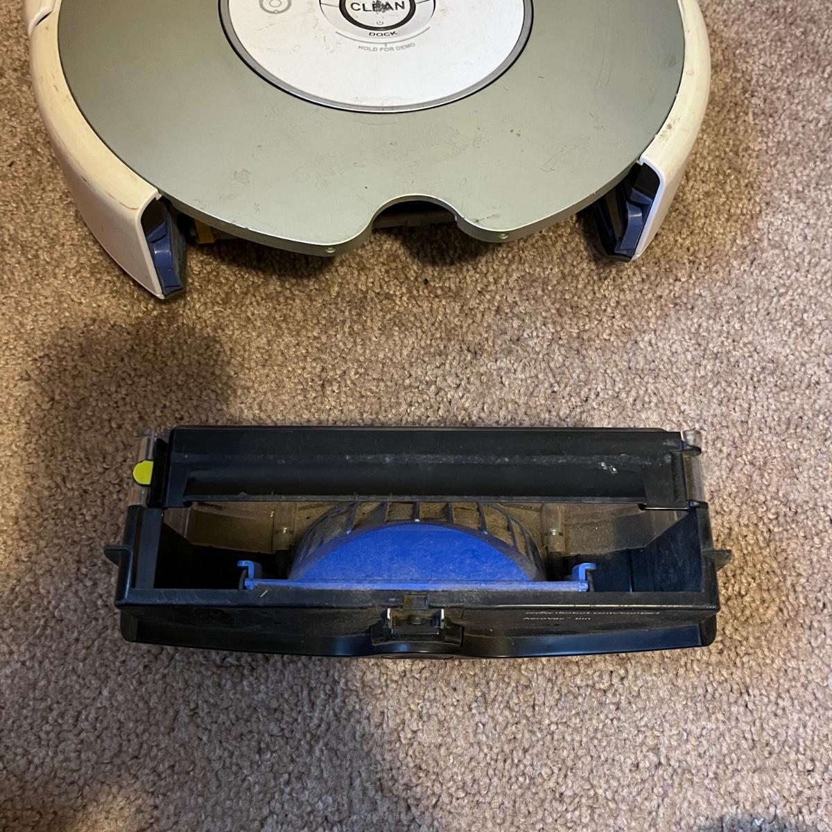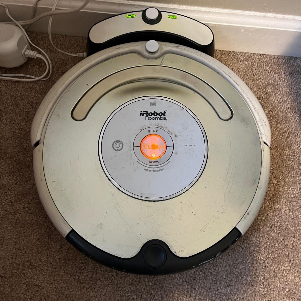 Lot includes a IRobot Roomba with docking base, virtual wall and replacement battery. Machine powered on when plugged in.