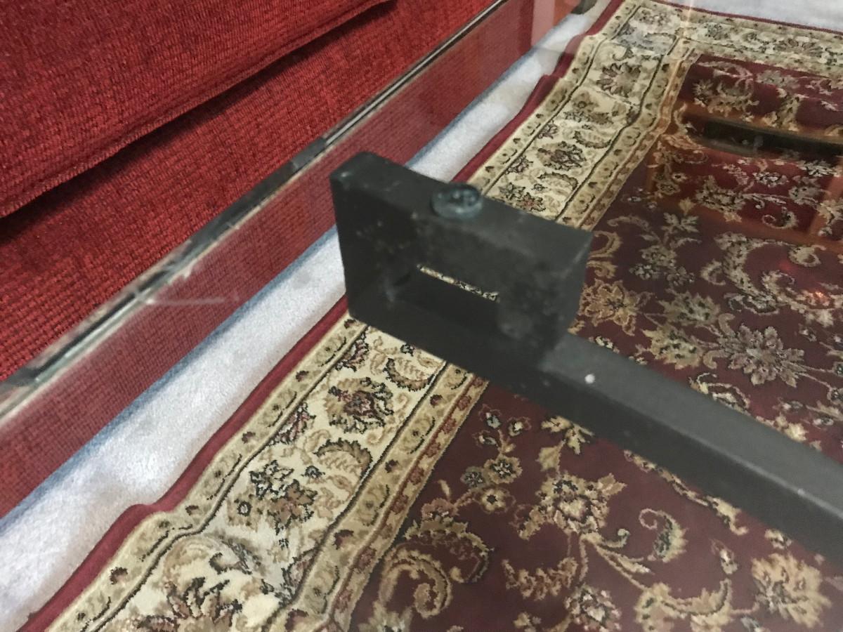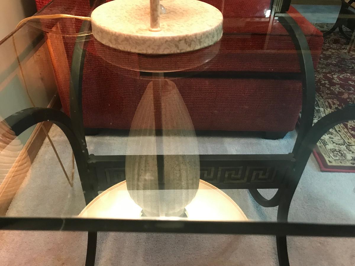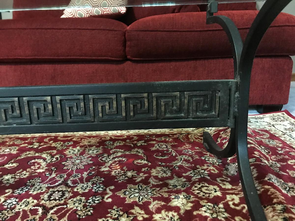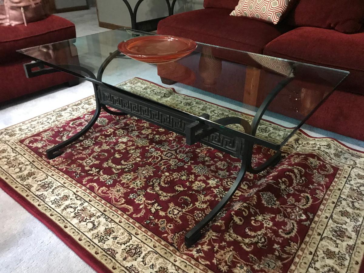 COFFEE TABLE 122"W X 25"D X 18.5"H; END TABLE: 70.1" X 61.5" X 75"; VERY MINIMAL USE