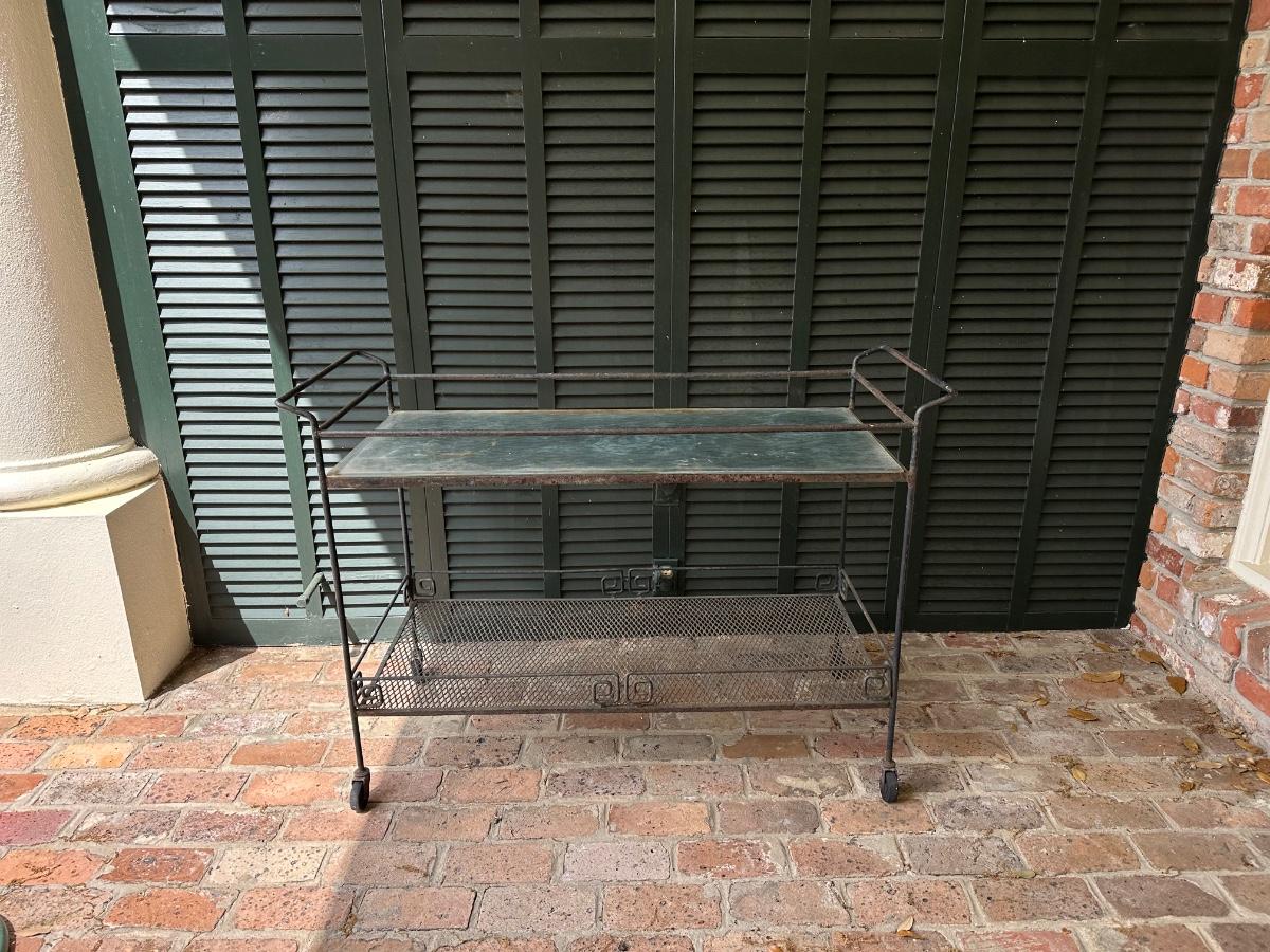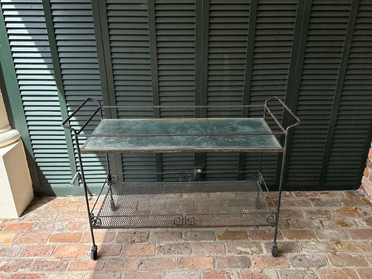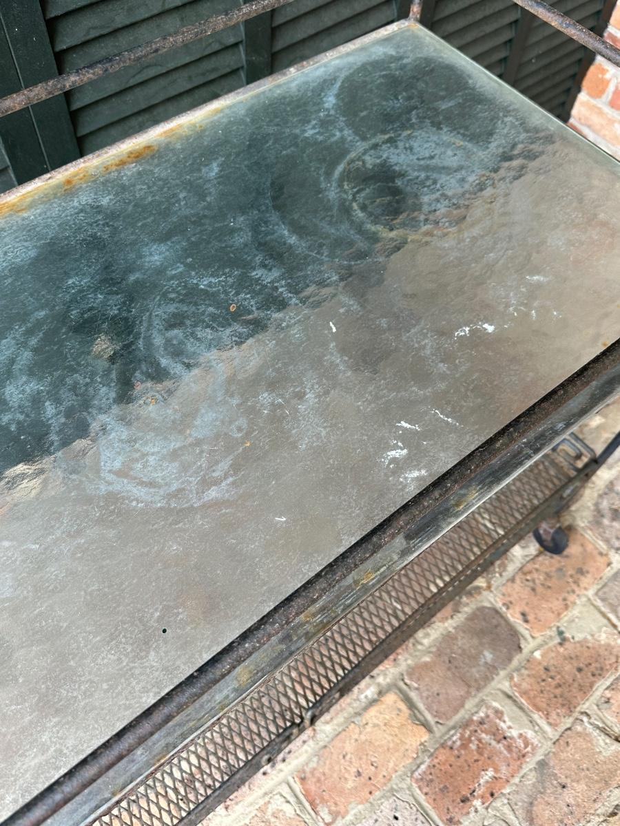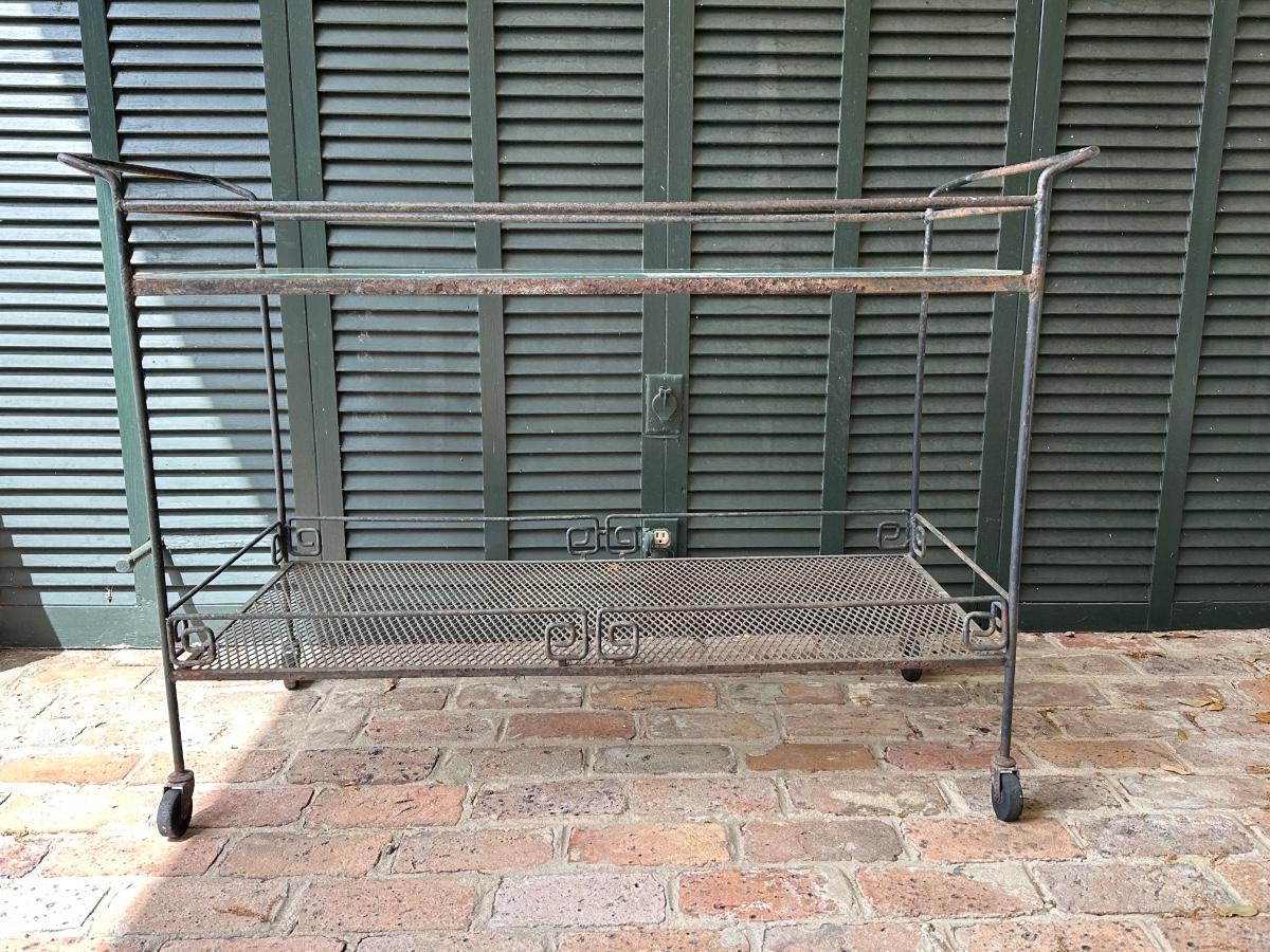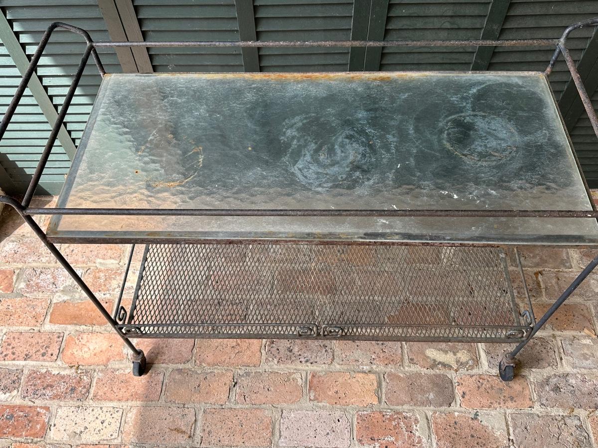 Iron and Glass Rolling Cart (See Details)