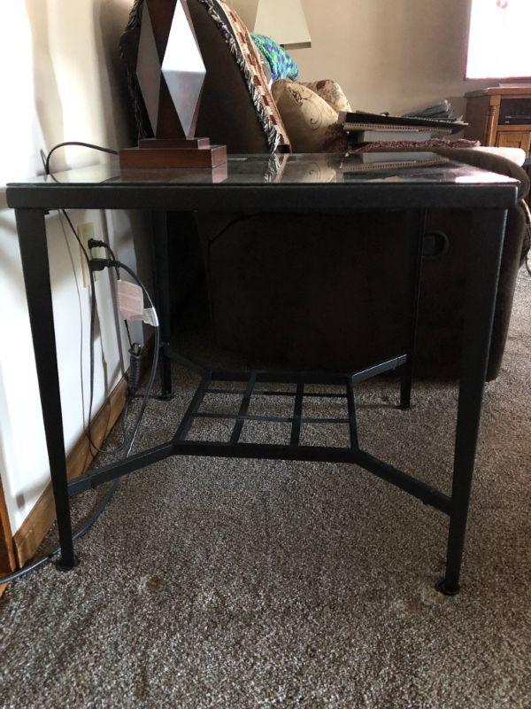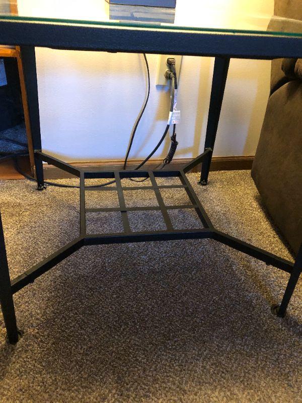 2 Black Iron & Glass tables with Tile decorative inserts (24" H X 24" D X 24" W)
